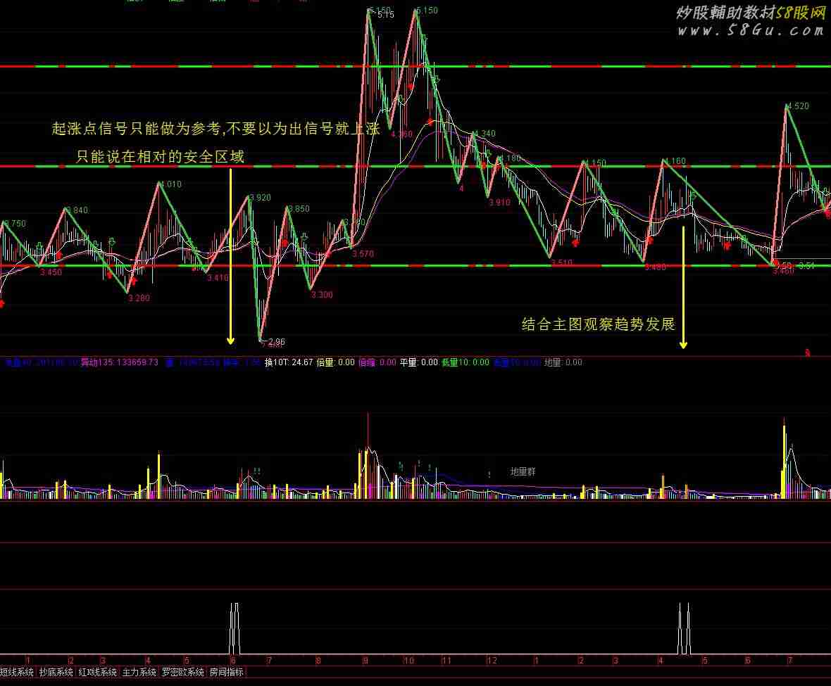 现在市场上没有百分百能用指标来判断一个股票的上涨或者下跌,所以指标不是万能的,有人说指标成功在95%或者以上那么我告诉你不用相信他们.这个起张点指标主要是判断一个股票启动作为参考作用,希望下的朋友慢慢去领会