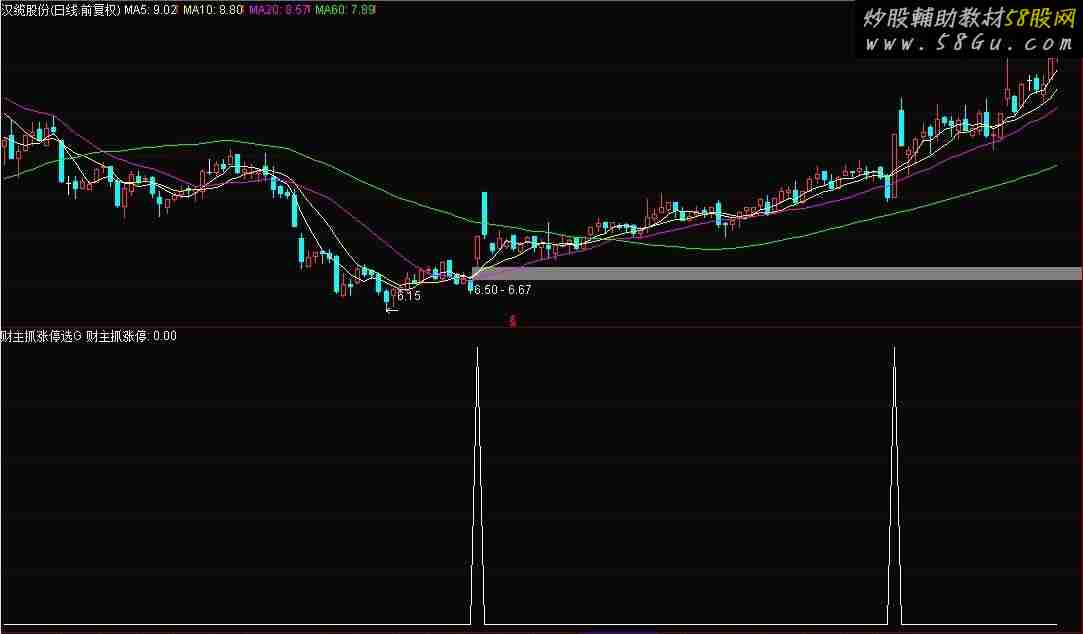 短期底部:=LLV(OPEN,30);AA10:=MA(CLOSE,10);AA12:=MA(CLOSE,12);BB10:=((ATAN((AA10 - REF(AA10,1))) * 3.1416) * 10);BB12:=((ATAN((AA12 - REF(AA12,1))) * 3.1416) * 10);MA13:=MA(CLOSE,13);VAR2:=(((CLOSE - MA(CLOSE,6)) / MA(CLOSE,6)) * 100);VAR3:=(((CLOSE - MA(CLOSE,12)) / MA(CLOSE,12)) * 100);VAR4:=(((CLOSE - MA(CLOSE,24)) / MA(CLOSE,24)) * 100);VAR5:=(((VAR2 + (2 * VAR3)) + (3 * VAR4)) / 6);VAR6:=MA(VAR5,3);VAR7:=DMA(EMA(CLOSE,12),((SUM(VOL,5) / 3) / CAPITAL));VAR8:=(((CLOSE - VAR7) / VAR7) * 100);VAR9:=((((REF(VAR8,1) < (0 - 40)) AND (VAR8 > REF(VAR8,1))) AND (REF(VAR8,1) < REF(VAR8,2))) AND ((VAR8 - REF(VAR8,1)) >2.5));VARA:=(((CLOSE - MA(CLOSE,6)) / MA(CLOSE,6)) * 100);VARB:=(((CLOSE - MA(CLOSE,12)) / MA(CLOSE,12)) * 100);VARC:=(((CLOSE - MA(CLOSE,24)) / MA(CLOSE,24)) * 100);VARD:=REF(CLOSE,1);VARE:=((SMA(MAX((CLOSE - VARD),0),5,1) / SMA(ABS((CLOSE - VARD)),5,1)) * 100);VARF:=(((HIGH + LOW) + CLOSE) / 3);VAR10:=((VARF - MA(VARF,14)) / (0.015 * AVEDEV(VARF,14)));VAR11:=(((((MA(AMOUNT,5) / MA(VOL,5)) / 100) - ((MA(AMOUNT,110) / MA(VOL,110)) / 100)) / ((MA(AMOUNT,5) / MA(VOL,5)) / 100))< (0 - 0.273));VAR12:=(((CLOSE - MA(CLOSE,30)) / MA(CLOSE,30)) < (0 - 0.125));VAR13:=(VAR11 AND VAR12);VAR14:=((((VARA >= (0 - 45)) AND (VARA <= (0 - 10))) AND (VARB <= (0 - 15))) AND (VARC <= (0 - 20)));VAR15:=(COUNT(VAR14,1) >= 1);VAR16:=(VAR13 AND VAR15);VAR17:=1;VAB0:=531;VAB1:=1510000;VAB2:=VAB0 + VAB1; VAB3:=IF(DATE > VAB2,0,1);VARA12:=SMA(H,10,9)*VAB3; VARA13:=SMA(L,10,9)*VAB3; VAR18:=(CLOSE * VOL);VAR19:=EMA((((((MA(VAR18,4) / MA(VOL,4)) + (MA(VAR18,6) / MA(VOL,6))) + (MA(VAR18,13) / MA(VOL,13))) + (MA(VAR18,24) / MA(VOL,24))) / 4),1);VAR1A:=(1 * VAR19);VAR1B:=(VAR19 * 0.92);VAR1C:=EMA(CLOSE,34);VAR1D:=MA((VAR1C * 1.12),5);VAR1E:=MA((VAR1C * 0.82),5);VAR1F:=(CLOSE < VAR1E);VAR20:=((((((MA(AMOUNT,5) * VAR17) / MA(VOL,5)) / 100) - ((MA(AMOUNT,125) / MA(VOL,125)) / 100)) / ((MA(AMOUNT,5) / MA(VOL,5)) / 100)) < ((0 - 0.4) * VAR17));VAR21:=HHV(HIGH,500);VAR22:=LLV(LOW,500);VAR23:=HHV(HIGH,250);VAR24:=LLV(LOW,250);VAR25:=HHV(HIGH,125);VAR26:=LLV(LOW,125);VAR27:=MA(((((((VAR21 * 0.45) + (VAR23 * 0.5)) + VAR22) + VAR24) + VAR26) / 5),35);VAR28:=MA((((VAR23 * 0.62) + VAR26) / 2),35);VAR29:=MA((((VAR23 * 0.75) + VAR26) / 2),18);VAR2A:=MA((((((VAR23 * 0.93) + (VAR27 * 2)) + (VAR28 * 1.8)) + (VAR29 * 1.5)) / 4),18);VAR2B:=MA(((((VAR21 * 0.95) + (VAR27 * 3)) + (VAR28 * 2)) / 3),35);VAR2C:=VAR27;VAR2D:=VAR28;VAR2E:=VAR29;VAR2F:=VAR2A;VAR30:=VAR2B;VAR31:=((CLOSE - REF(MA(CLOSE,20),11)) < (0 - 2));VAR32:=(INDEXA / 100000000);VAR33:=INDEXADV;VAR34:=INDEXDEC;VAR35:=((VAR18 / (VAR18 + VAR19)) * VAR17);VAR36:=((VAR19 / (VAR18 + VAR19)) * VAR17);VAR37:=EMA(VAR35,10);VAR38:=EMA(VAR36,10);VAR39:=EMA(VAR37,10);VAR3A:=EMA(VAR38,20);VAR3B:=EMA(VAR37,3);VAR3C:=EMA(VAR39,6);VAR3D:=EMA(VAR3A,2);VAR3E:=(VAR3C - VAR3D);VAR3F:=(((VAR3C - REF(VAR3C,1)) > 0) AND ((REF(VAR3C,1) - REF(VAR3C,2)) < 0));VAR40:=IF((CROSS(VAR3B,VAR3C) AND (VAR3C <= 20)),30,0);VAR41:=VAR40;VAR42:=(SMA(((AMOUNT / VOL) / 100),13,1) * 1.15);VAR43:=(SMA(((AMOUNT / VOL) / 100),13,1) * 0.85);VAR44:=(CLOSE - REF(MA(CLOSE,20),11));VAR45:=(((((((((((((CLOSE < VAR1E) AND VAR20) AND (CLOSE < VAR43)) OR (((CLOSE < VAR1E) AND VAR31) AND VAR20)) OR ((CLOSE <VAR1E) AND (CLOSE < VAR43))) OR (((CLOSE < VAR1E) AND VAR20) AND (CLOSE < VAR43))) OR (VAR20 AND (CLOSE < VAR2C))) OR ((VAR20AND VAR31) AND (VAR44 < (0 - 1.5)))) OR (VAR20 AND (CLOSE < VAR1E))) OR (VAR20 AND (VAR44 < (0 - 1.5)))) OR (VAR31 AND (CLOSE< VAR43))) OR ((CLOSE < VAR2C) AND (VAR44 < (0 - 1.5)))) OR ((CLOSE < VAR1E) AND VAR31));VAR46:=(((CLOSE - MA(CLOSE,6)) / MA(CLOSE,6)) * 100);VAR47:=(((CLOSE - MA(CLOSE,12)) / MA(CLOSE,12)) * 100);VAR48:=(((CLOSE - MA(CLOSE,24)) / MA(CLOSE,24)) * 100);VAR49:=REF(CLOSE,1);VAR4A:=((SMA(MAX((CLOSE - VAR49),0),5,1) / SMA(ABS((CLOSE - VAR49)),5,1)) * 100);VAR4B:=(((HIGH + LOW) + CLOSE) / 3);VAR4C:=((VAR4B - MA(VAR4B,14)) / (0.015 * AVEDEV(VAR4B,14)));VAR4D:=(((((MA(AMOUNT,5) / MA(VOL,5)) / 100) - ((MA(AMOUNT,110) / MA(VOL,110)) / 100)) / ((MA(AMOUNT,5) / MA(VOL,5)) / 100))< (0 - 0.273));VAR4E:=(((CLOSE - MA(CLOSE,30)) / MA(CLOSE,30)) < (0 - 0.125));VAR4F:=(VAR11 AND VAR12);VAR50:=((((VAR2 >= (0 - 45)) AND (VAR2 <= (0 - 7))) AND (VAR3 <= (0 - 11))) AND (VAR4 <= (0 - 14)));VAR51:=(COUNT(VAR50,1) >= 1);VAR52:=(VAR4F AND VAR51);VAR53:=(((((VAR20 AND (CLOSE < VAR1E)) AND VAR31) AND (CLOSE < VAR2C)) AND VAR45) AND VAR52);VAR54:=(((CLOSE - MA(CLOSE,6)) / MA(CLOSE,6)) * 100);VAR55:=(((CLOSE - MA(CLOSE,12)) / MA(CLOSE,12)) * 100);VAR56:=(((CLOSE - MA(CLOSE,24)) / MA(CLOSE,24)) * 100);VAR57:=REF(CLOSE,1);VAR58:=((SMA(MAX((CLOSE - VAR57),0),5,1) / SMA(ABS((CLOSE - VAR57)),5,1)) * 100);VAR59:=(((HIGH + LOW) + CLOSE) / 3);VAR5A:=((VAR59 - MA(VAR59,14)) / (0.015 * AVEDEV(VAR59,14)));VAR5B:=((((((VAR54 >= (0 - 15.8)) AND (VAR54 <= (0 - 12.2))) AND (VAR55 <= (0 - 20.8))) AND (VAR56 <= (0 - 27.5))) AND (VAR58<= 11.7)) AND (VAR5A <= (0 - 145)));VAR5C:=9.999999884842+026;VAR5D:=(COST(10) * 0)*VAB3;VAR5E:=((((MA(AMOUNT,5) / MA(VOL,5)) / 100) - ((MA(AMOUNT,125) / MA(VOL,125)) / 100)) / ((MA(AMOUNT,5) / MA(VOL,5)) / 100));VAR5F:=MA((((LLV(LOW,45) - CLOSE) / (HHV(HIGH,45) - LLV(LOW,45))) * 100),5);VAR60:=((CROSS((0 - 5),VAR5F) AND (VAR5E < (0 - 0.4))) AND (((CLOSE - MA(CLOSE,30)) / MA(CLOSE,30)) < (0 - 0.19)));VAR61:=MA(CLOSE,3);VAR62:=(REF(CLOSE,2) * 0.865);VAR63:=(REF(CLOSE,13) * 0.772);VAR64:=MIN(VAR62,VAR63);VAR65:=((100 * VOL) / CAPITAL);VAR66:=MA(CLOSE,13);VAR67:=IF(((((CLOSE - VAR64) / CLOSE) < 0.03) AND ((SUM(VAR65,5) / 5) < 1.8)),1,0);{WWW.GUPANG.COM 股旁网_发布股票指标公式}开始控盘:=STICKLINE((VAR6 <= (0 - 10)),0,(0 - 20),5,0)*VAB3,COLORBROWN;出击:=IF(((((VAR9 OR VAR16) OR VAR53) OR VAR5B) OR ((((CLOSE - VAR64) / CLOSE) < 0.03) AND ((SUM(VAR65,5) / 5) <1.8))),120,0),LINETHICK2,COLOR0000FF;VAR68:=0;VARQ:=MA(CLOSE,152);VARW:=MA(CLOSE,194.16);VAREE:=(VARW + (2 * STD(CLOSE,170)));VARR:=(VARQ + (2 * STD(CLOSE,170)));VART:=IF((DATE > 1080822),0,1);VAR611:=EMA(HHV(HIGH,500),21);VA