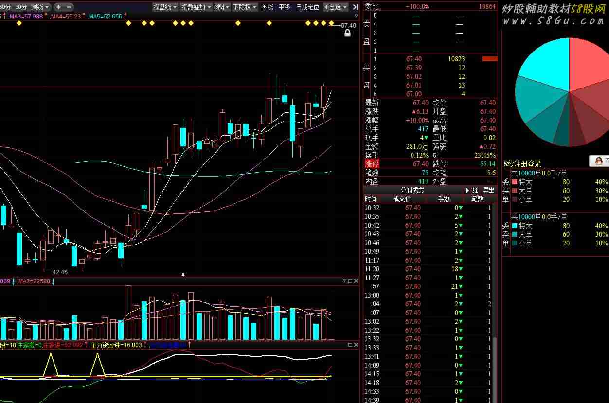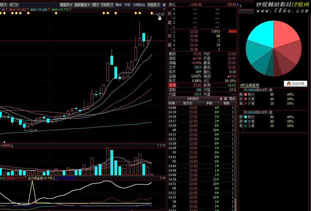 大主力: 3*SMA((CLOSE-LLV(LOW,27))/(HHV(HIGH,27)-LLV(LOW,27))*100,5,1)-2*SMA(SMA((CLOSE-LLV(LOW,27))/(HHV(HIGH,27)-LLV(LOW,27))*100,5,1),3,1), ,linethick2, ;抄底信号: 10, ,linethick2,colorred ;买入个股: IF(CROSS(大主力,抄底信号),100,10), ,linethick2,coloryellow;V1:=(C*2+H+L)/4*10;V2:=EMA(V1,13)-EMA(V1,34);V3:=EMA(V2,5);V4:=2*(V2-V3)*5.5;V5:=(HHV(INDEXH,8)-INDEXC)/(HHV(INDEXH,8)-LLV(INDEXL,8))*8;V6:=EMA(3*V5-2*SMA(V5,18,1),5);V7:=(INDEXC-LLV(INDEXL,8))/(HHV(INDEXH,8)-LLV(INDEXL,8))*10;V8:=(INDEXC*2+INDEXH+INDEXL)/4;V9:=EMA(V8,13)-EMA(V8,34);VA:=EMA(V9,3); VB:=(V9-VA)/2;V11:=3*SMA((C-LLV(L,55))/(HHV(H,55)-LLV(L,55))*100,5,1)-2*SMA(SMA((C-LLV(L,55))/(HHV(H,55)-LLV(L,55))*100,5,1),3,1);庄家撤: IF(V4<=0,V4,0),COLORGREEN;庄家进: IF(V4>=0,V4,0),colorred;主力资金进: IF(VB>=0,VB,0),COLORYELLOW;主力资金撤: IF(VB<=0,VB,0),COLORBLUE;