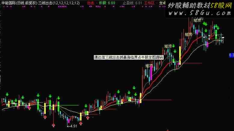 TT2:=DMA((((HIGH + LOW) + (CLOSE * 2)) / 4.15),0.9); TT1:=REF(EMA(TT2,3),1); RSV:=(CLOSE-LLV(LOW,9))/(HHV(HIGH,9)-LLV(LOW,9))*100; K:=SMA(RSV,3,1); D:=SMA(K,3,1); J:=3*K-2*D; LC:=REF(CLOSE,1); RSI:=((SMA(MAX((CLOSE - LC),0),3,1) / SMA(ABS((CLOSE - LC)),3,1)) * 100); FF:=EMA(CLOSE,3); AA1:=AMOUNT/VOL; BB1:=L<AA1*0.9; CC1:=(C-REF(C,1))/REF(C,1)*100>1.2; DD1:=L<MA(C,5)*0.921; EE1:=VOL<MA(V,5)*1.5; FF1:=BB1 AND CC1 AND DD1 AND EE1; F:=100*(C-REF(C,1))/REF(C,1); P1:=IF(C<REF(O,1) AND F<0,1,0); P2:=IF(C<REF(O,2) AND F<0,1,0); TT3:=P1=0 AND REF(P1,1)=1 AND P2=0 AND REF(P2,1)=1 ; TT4:=P1=1 AND REF(P1,1)=0 AND P2=1 AND REF(P2,1)=0 ; Z1:=MA(C,13); ZX:=REF(Z1,13/2+1); DRAWICON(CROSS(ZX,C),H*1.01,2); DRAWTEXT(CROSS(CLOSE,TT1)AND J<55,LOW,'买'),COLORRED; DRAWTEXT(CROSS(88,RSI),HIGH * 1.02,'短顶'),COLOR00FFFF; STICKLINE(TT3,OPEN,CLOSE,3,0),COLORFF00FF; A1:=EMA(C,14)COLORWHITE,LINETHICK1; A1X:=(A1-REF(A1,1))/REF(A1,1)*100,NODRAW; 出击:IF(A1X>=0,REF(EMA(C,14),BARSLAST(CROSS(A1X,0))+1),DRAWNULL)COLORRED,LINETHICK1; 休假:IF(A1X<0,REF(EMA(C,14),BARSLAST(CROSS(0,A1X))+1),DRAWNULL)COLORGREEN,LINETHICK1; STICKLINE(CROSS(A1X,0),C,O,2,0)COLORYELLOW; STICKLINE(CROSS(0,A1X),C,O,2,0)COLORGREEN; STICKLINE(CROSS(A1X,0)OR CROSS(0,A1X),REF(EMA(C,14),1),REF(EMA(C,14),1)*0.998,2,0)COLORWHITE; STICKLINE(ISLASTBAR,REF(EMA(C,14),1),REF(EMA(C,14),1)*0.998,5,0)COLORWHITE; 工作线:=EMA(C,14); 止盈线:EMA(C,7),LINETHICK1,COLORGRAY; 工作区:IF(C>=工作线 AND EMA(C,14)>=EMA(C,25),工作线,DRAWNULL), COLORRED,LINETHICK2; 生命线:EMA(C,25),COLORYELLOW; {DRAWICON(CROSS(工作线,生命线),工作线*0.95,5);原句} {好股票网-股票软件公式网站 WWW.GOODGUPIAO.COM} IF(CROSS(工作线,生命线),工作线*0.975,DRAWNULL),CIRCLEDOT,COLORRED; DRAWICON(CROSS(C,生命线) AND C>EMA(C,14),L*0.99,1); DRAWICON(COUNT(C<EMA(C,7),2)=2 AND EMA(C,7)>EMA(C,14) AND COUNT(C>止盈线,6)>=3,H*1.03,2);