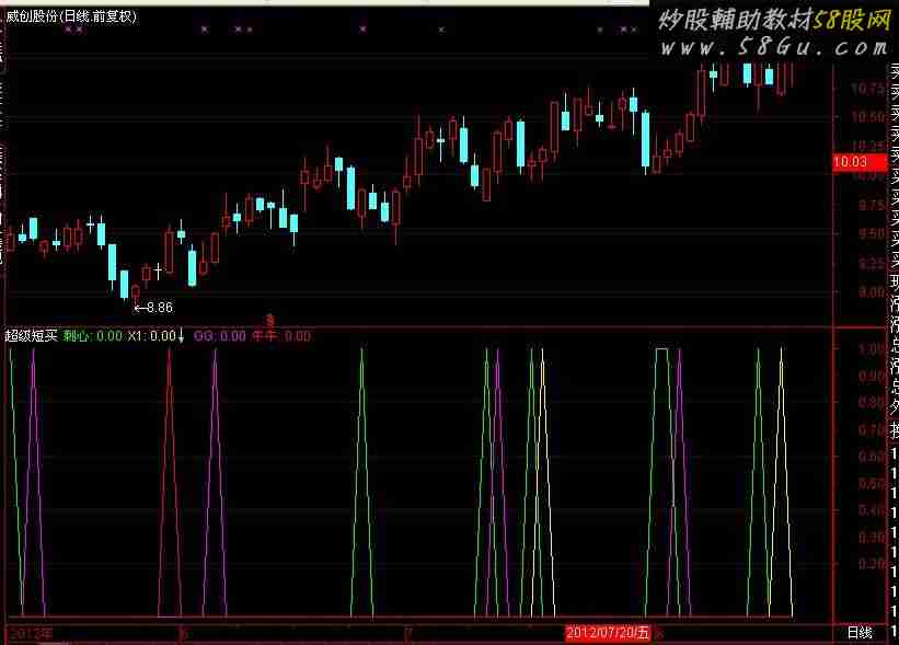 SDT:=IF(NAMELIKE('S'),0,1) AND IF(NAMELIKE('*'),0,1); S2:=(CAPITAL/100)/10000<=10; S3:=DYNAINFO(4)>0; TS:=REF(H,3)>REF(H,4); A:=C>REF(C,1) AND C<REF(C,3) AND REF(C,1)<REF(C,2)<REF(C,3) AND C>=O; B:=V<REF(V,1) AND V<REF(V,3); QW:=H<REF(H,1); XG:A AND B AND TS AND SDT AND S2 AND S3 AND QW;