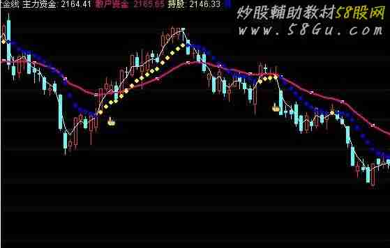 主力资金:EXPMA(CLOSE,3),LINETHICK1; 散户资金:EXPMA(CLOSE,26)COLORLIMAGENTA,LINETHICK2; VAR1:=(CLOSE+HIGH+LOW)/3; VAR2:=EMA(VAR1,9); VAR3:=REF(VAR2,1); 持股: IF(VAR2>VAR3,VAR2,DRAWNULL), POINTDOT,LINETHICK6, COLORYELLOW; 持币: IF(VAR2<VAR3,VAR3,DRAWNULL),POINTDOT,LINETHICK6, COLORBLUE; AA:=CROSS(MA(C,5),MA(C,18)); DRAWICON(AA,L*0.98,11); C2:=REF(C,1); 涨停:=IF((C-C2)*100/C2>=(10-0.01*100/C2),1,0); STICKLINE(涨停,OPEN,CLOSE,2,0),COLORYELLOW; STICKLINE(涨停,H,L,0,0),COLORYELLOW; 跌停:=IF((C2-C)*100/C2>=(10-0.01*100/C2),1,0); STICKLINE(跌停,OPEN,CLOSE,2,0),COLORGREEN; STICKLINE(跌停,H,L,0,1),COLORGREEN;