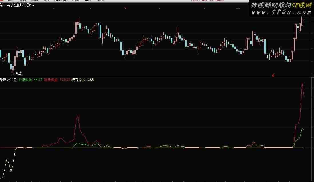 Z_J1:=EMA(C,2)-EMA(C,150); Z_J2:=EMA(Z_J1,100); Z_J3:=2*(Z_J1-Z_J2); Z_J4:=POW(Z_J3,3)*0.1+POW(Z_J3,1); 主流资金: IF(Z_J3>0.1,Z_J4,0)*5,COLORGREEN; G_J1:=EMA(C,2)-EMA(C,89); G_J2:=EMA(G_J1,30); G_J3:=2*(G_J1-G_J2)*9.8; G_J4:=POW(G_J3,3)*0.1+POW(G_J3,2); 攻击资金:IF(G_J3>0.015,G_J4,0)/28,COLORRED; 流存资金:IF(攻击资金=0,-ABS(G_J4/28),0),LINETHICK1,COLORYELLOW; |