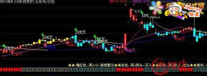 ZJ:=MA("KDJ.J#WEEK"(9,3,3) ,5); AAA:=ZJ<0 AND ZJ<REF(ZJ,1); BB:=ZJ<0 AND ZJ>=REF(ZJ,1); DD:=ZJ>=0 AND ZJ>=REF(ZJ,1); EE:= ZJ>85; FF:=ZJ<REF(ZJ,1) AND ZJ>0; STICKLINE(AAA,C,O,3,0),COLOR2737FF; STICKLINE(AAA,H,L,0,0),COLOR2737FF; STICKLINE(AAA,C,O,1.9,0),COLOR226CFF; STICKLINE(AAA,C,O,1.0,0),COLOR3EA6FF; STICKLINE(AAA,C,O,0.2,0),COLOR17FFF6; STICKLINE(BB,C,O,3,0),COLOR990099; STICKLINE(BB,H,L,0,0),COLORFF00FF; STICKLINE(BB,C,O,1.9,0),COLORBB00CC; STICKLINE(BB,C,O,1.0,0),COLORDD00DD; STICKLINE(BB,C,O,0.2,0),COLORFF88FF; STICKLINE(DD,C,O,3,0),COLOR000099; STICKLINE(DD,H,L,0,0),COLOR0000FF; STICKLINE(DD,C,O,1.9,0),COLOR0000CC; STICKLINE(DD,C,O,1.0,0),COLOR0000DD; STICKLINE(DD,C,O,0.2,0),COLOR7788FF; STICKLINE(EE,C,O,3,0),COLOR00AAAA; STICKLINE(EE,H,L,0,0),COLOR00FFFF; STICKLINE(EE,C,O,1.9,0),COLOR00CCCC; STICKLINE(EE,C,O,1.0,0),COLOR00DDDD; STICKLINE(EE,C,O,0.2,0),COLOR00FFFF; STICKLINE(FF,C,O,3,0),COLOR888800; STICKLINE(FF,H,L,0,0),COLORFFFF00; STICKLINE(FF,C,O,1.9,0),COLORCCCC00; STICKLINE(FF,C,O,1.0,0),COLORDDDD00; STICKLINE(FF,C,O,0.2,0),COLORFFFF00; YK:=MA("KDJ.K#MONTH"(9,3,3),20),LINETHICK0; YD:=MA("KDJ.D#MONTH"(9,3,3),20),LINETHICK0; YJ:=MA("KDJ.J#MONTH"(9,3,3),20); ZK:=MA("KDJ.K#WEEK"(9,3,3) ,5),LINETHICK0; ZD:=MA("KDJ.D#WEEK"(9,3,3) ,5),LINETHICK0; RSV:=(CLOSE-LLV(LOW,9))/(HHV(HIGH,9)-LLV(LOW,9))*100; K:=SMA(RSV,3,1),LINETHICK0; D:=SMA(K,3,1),LINETHICK0; J:=3*K-2*D,LINETHICK0; RJC:DRAWICON(CROSS(K,D),L*0.98,1); DRAWTEXT(RJC,L*0.98,'日金叉'),COLOR0000FF; RSC:DRAWICON(CROSS(D,K),H*1.03,2),; DRAWTEXT(RSC,H*1.03,'日死叉'),COLORFFFFFF; ZJC: DRAWICON (CROSS(ZK,ZD), L*0.98,1); DRAWTEXT(ZJC,L*0.98,'周金叉'),COLORFF00FF; ZSC: DRAWICON (CROSS(ZD,ZK), H*1.03,2),; DRAWTEXT(ZSC,H*1.03,'周死叉'),COLOR00FFFF; YJC: DRAWICON (CROSS(YK,YD), L*0.98,1); DRAWTEXT(YJC,L*0.98,'月金叉'),COLORFF0000; YSC: DRAWICON (CROSS(YD,YK), H*1.03,2); DRAWTEXT(YSC,H*1.03,'月死叉'),COLORADEAEA; MA10:MA(C,10),COLORRED,LINETHICK1; IF(MA10<REF(MA10,1),MA10,DRAWNULL),COLORFFFF00,LINETHICK1; MA20:MA(C,20),COLORFF00FF,LINETHICK1; IF(MA20<REF(MA20,1),MA20,DRAWNULL),COLORFFFFFF,LINETHICK1; MA55:MA(C,55),COLORFF0000,LINETHICK1; IF(MA55<REF(MA55,1),MA55,DRAWNULL),COLOR00FFFF,LINETHICK1; TT:=IF(ISLASTBAR,240/FROMOPEN,1); NN:=120; HH:=HHV(V*TT,NN); LL:=LLV(V,NN); 最高:=CONST(HH); 最低:=CONST(LL); 最高2:=CONST(HHV(H,NN)); 最低2:=CONST(LLV(L,NN)); PP:=IF((最高2*0.9-(最高2-最低2)*0.5)>CONST(LLV(L,20)),0.9,IF((最高2*0.9-(最高2-最低2)*0.5)>CONST(LLV(L,50)),0.7,0.6)),NODRAW; RCC1:=最高2*0.9-(最高2-最低2)*PP; 最低3:=MIN(RCC1,最低2); AA:=最低3; STICKLINE(AAA,AA-0.000*AA,AA-0.040*AA,2.5,0),COLOR3EA6FF; STICKLINE(BB,AA-0.000*AA,AA-0.040*AA,2.5,0),COLORFF00FF; STICKLINE(DD,AA-0.000*AA,AA-0.040*AA,2.5,0),COLOR0000FF; STICKLINE(EE,AA-0.000*AA,AA-0.040*AA,2.5,1),COLOR00FFFF; STICKLINE(FF,AA-0.000*AA,AA-0.040*AA,2.5,1),COLORFFFF00; DRAWTEXT_FIX(1,0.2,0.86,0,'★★ 橘红色--周J<0--底部警示★★粉色--周J拐头--买入★★红色--周J向上--加仓★★黄色--周J>85--风险提示★★青色--周J下跌--持币★★'),COLOR00FFFF; |
