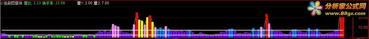 前面发两指标 都是修改的 不是原创 这是本人做的 很简单几句代码!!显示量比和换手,我觉得非常实用我本着分享的精神,拿出来,不喜欢勿喷因为我一直相信,成功的不靠指标,靠的是人的综合分析能力 即时虚拟量:=IF(CURRBARSCOUNT=1 AND PERIOD=5,VOL/FROMOPEN*240,DRAWNULL),NODRAW;虚拟量:=IF(CURRBARSCOUNT>1,VOL,即时虚拟量);量比:虚拟量/REF(MA(虚拟量,5),1),COLOR40FF00,NODRAW;换手率:V/CAPITAL*100,COLORGREEN;STICKLINE(换手率>0 AND 换手率<=1,0,换手率,2,0),COLORFFFFFF;STICKLINE(换手率>1 AND 换手率<=2,0,换手率,2,0),COLOR00FF00;STICKLINE(换手率>2 AND 换手率<=7,0,换手率,2,0),COLORFF0080;STICKLINE(换手率>7 AND 换手率<=10,0,换手率,2,0),COLORFF8000;STICKLINE(换手率>10 AND 换手率<=15,0,换手率,2,0),COLORFF80FF;STICKLINE(换手率>15 AND 换手率<=20,0,换手率,2,0),COLOR00FFFF;STICKLINE(换手率>20,0,换手率,2,0),COLORRED;2,COLORWHITE,DOTLINE,LINETHICK2;7,COLORWHITE,DOTLINE,LINETHICK2; |
