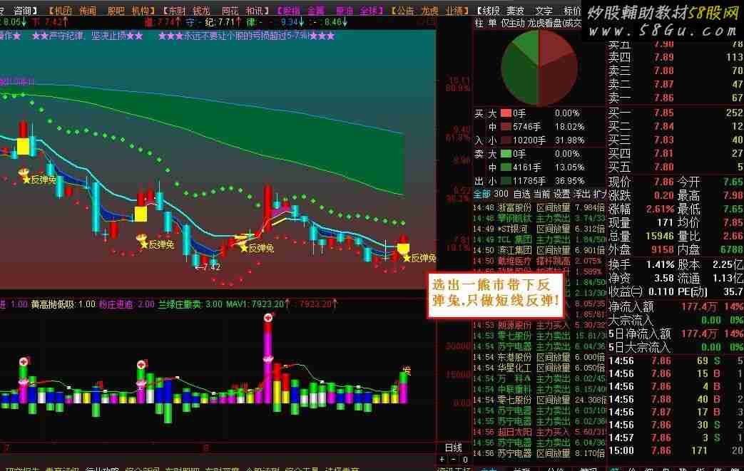 本公式需要通达信4.17版本公式编辑器才可以导入公式。五里看盘主图1号,并用图解的方式简述本指标实战应用理念及方法,希望为您的买卖提供某种可靠的决策依据!指标以TXT文件格式上传。主图1号布林兔-牛选股原码: 压力:=MA(REF(HHV(C,30),1),2),COLOR00FF00; 支撑:=MA(REF(LLV(C,30),1),2),COLOR0000FF; 中:=(MA(C,3)+MA(C,6)+MA(C,12)+MA(C,24))/4; 上:=BBI+3*STD(BBI,10); 下:=BBI-3*STD(BBI,10); 安全:=MA(C,30); TJ1:=下*1.05>中 AND 中*1.05>上 AND 中>=REF(中,1) AND REF(中,1)>=REF(中,2); TJ2:=LLV(REF(VOL,1),60); VAR91:=REF(V,1)+REF(V,2)+REF(V,3)+REF(V,4)+REF(V,5); VAR92:=VAR91/5; LB:=V/VAR92; TJ8:=C>LLV(LOW,120)*1.38; VAR2:=(H-L); VAR3:=ABS((O-C)); VAR4:=(H-IF((C>O),C,O)); VAR5:=(IF((C>O),O,C)-L); VAR6:=((VAR3/VAR2)*V); VAR7:=((VAR4/VAR2)*V); VAR8:=((VAR5/VAR2)*V); GG:=(VAR6>=VAR7) AND (VAR6>=VAR8) AND (C>O); TJ3:=LB>2 OR V/REF(V,1)>2 AND GG; WLT1:=EMA(C,3); WLT2:=EMA(C,5); WLT3:=EMA(WLT2,5); QQ:= C<上; MM:=WLT1<REF(WLT1,1); DD:=QQ AND MM; TJ6:=COUNT(DD,7)=1; TJ7:=C<LLV(LOW,250)*2.1; XG:=FILTER(TJ1 AND TJ7 AND TJ3,5) AND C<支撑*1.13; TJ81:=中>=REF(中,1) AND LAST( 中<=REF(中,1),8,1) AND CROSS(C,中) AND C<支撑*1.13; TJ82:=中>=REF(中,1) AND LAST( 中<=REF(中,1),5,1) AND CROSS(C,中) AND C<HHV(H,55)*0.72 AND C<支撑*1.13; 布林兔:=(TJ82 OR TJ81) AND LAST(MA(C,120)>MA(C,60),34,0); 布林牛:=(TJ82 OR TJ81) AND MA(C,120)<MA(C,60) AND C<LLV(L,55)*1.5 AND C>MA(C,120); KXG:布林兔 OR 布林牛;  |