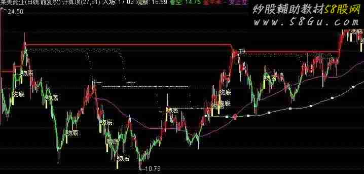 CC:=(H+O+L+C)/4; 入场:HHV(EXPMEMA(CC,3),110),POINTDOT; 观察:HHV(EXPMEMA(CC,3),72),COLORYELLOW,POINTDOT; 看空:EXPMEMA(CC,3),COLORGREEN,LINETHICK2; 金牛来:IF(看空>REF(MA(看空,3),27),看空,DRAWNULL), COLORRED,LINETHICK2; 女上位:MA(CC,110),COLORFF00FF;男上位:MA(CC,240),COLORGREEN; DRAWICON(CROSS(女上位,男上位),男上位,1); 成交:=AMOUNT/VOL/100; 吻:=IF(CLOSE>REF(CLOSE,1),88,0); 吻底:=IF(CLOSE/REF(CLOSE,1)>1.050 AND HIGH/CLOSE<1.010 AND 吻>0, 91, 0); STICKLINE(吻底>90,L*0.99,L*0.95,4,0),COLORYELLOW; DRAWTEXT(吻底>90,LOW*1,'吻底'),COLORYELLOW; 前开:=O; 前收:=C; 前高:=H; 前低:=L; V1:=(前收-LLV(前低,233))/(HHV(前高,233)-LLV(前低,233))*100; V2:=SMA(V1,3,1); V3:=SMA(V2,3,1); V4:=SMA(V3,3,1); 顶:MA(REF(HHV(前收,240),1),2),COLOR0000FF,LINETHICK2; DRAWTEXT(CROSS(V4,V3) AND V4>90 ,顶*1,'顶'),COLORF0F000; DRAWICON(CROSS(男上位,女上位),女上位,2); V5:=顶>看空; A5:=EMA(CLOSE,96)-EMA(CLOSE,208); A6:=EMA(A5,9); A7:=(A5<-0.1 AND A5>A6); |