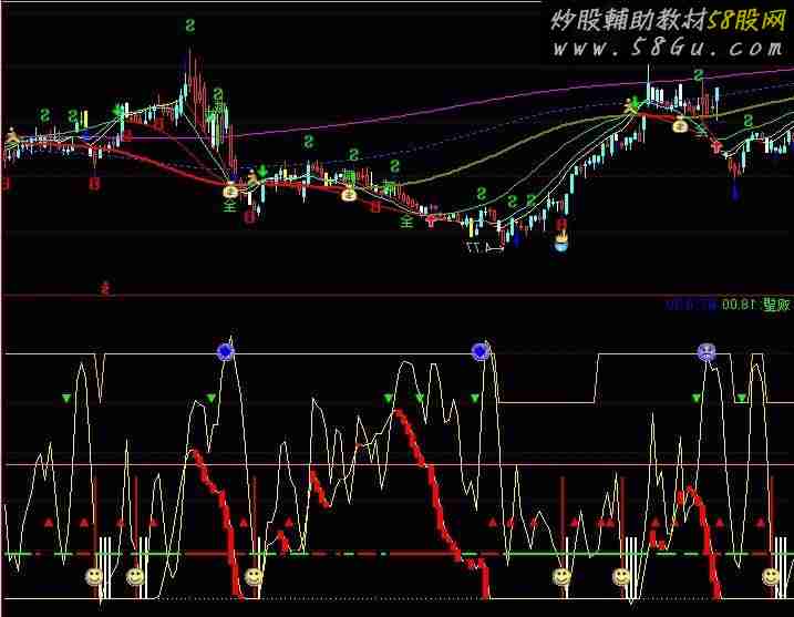 金鹰猎庄鬼N:=5; VAR1:4*SMA((CLOSE-LLV(LOW,N))/(HHV(HIGH,N)-LLV(LOW,N))*100,5,1)-3*SMA(SMA((CLOSE-LLV(LOW,N))/(HHV(HIGH,N)-LLV(LOW,N))*100,5,1),3.2,1),COLORYELLOW,LINETHICK1; VAR2:=8,COLORGREEN,LINETHICK0; 上升在即: IF(CROSS(VAR1,VAR2),50,0),STICK,COLOR0000CC,LINETHICK2; 专吸庄血: IF(VAR1<=8,25,0),STICK,COLORWHITE,LINETHICK2; DRAWICON(CROSS(VAR1,VAR2),8,5); VARO5:=LLV(LOW,27); VARO6:=HHV(HIGH,34); VARO7:=EMA((CLOSE-VARO5)/(VARO6-VARO5)*4,4)*25; 建仓区: IF((VARO7<10),80,100) ,COLOR00CCFF,LINETHICK1; {0,LINETHICK2 ,COLORFFCC00;} DRAWICON(CROSS(100,VAR1),100,6); DRAWICON((100-VAR1<3 AND 100-VAR1>0),100,6); DRAWTEXT(CROSS(85,VAR1),85,'▼'),COLORGREEN; DRAWTEXT(CROSS(VAR1,35),35,'▲'),COLORRED; DRAWTEXT(CROSS(VAR1,104),104,'◆'),COLORBLUE; DRAWTEXT(CROSS(VAR1,110) OR CROSS(VAR1,120),115,'○'),COLORWHITE; 强弱分界线:55,COLORLIRED; Y:=IF((55-VAR1)>=0,-1,1),COLORGREEN; 持股:IF(Y=1,18,DRAWNULL),COLORRED,LINETHICK2; 观望:IF(Y=-1,18,DRAWNULL),COLORGREEN,LINETHICK2; {以上是专吸庄血,下面的是猎庄敢死队} B1:=(HHV(H,9)-C)/(HHV(H,9)-LLV(LOW,9))*100-70; B2:=SMA(B1,9,1)+100; B3:=(C-LLV(L,9))/(HHV(H,9)- LLV(L,9))*100; B4:=SMA(B3,3,1); B5:=SMA(B4,3,1)+100; B6:=B5-B2; B7:IF(B6>60,B6-60,0); 持有:STICKLINE(REF(B7,1)<B7,B7,REF(B7,1),5,0),COLORRED; {0,POINTDOT,COLORRED,LINETHICK3;}; |