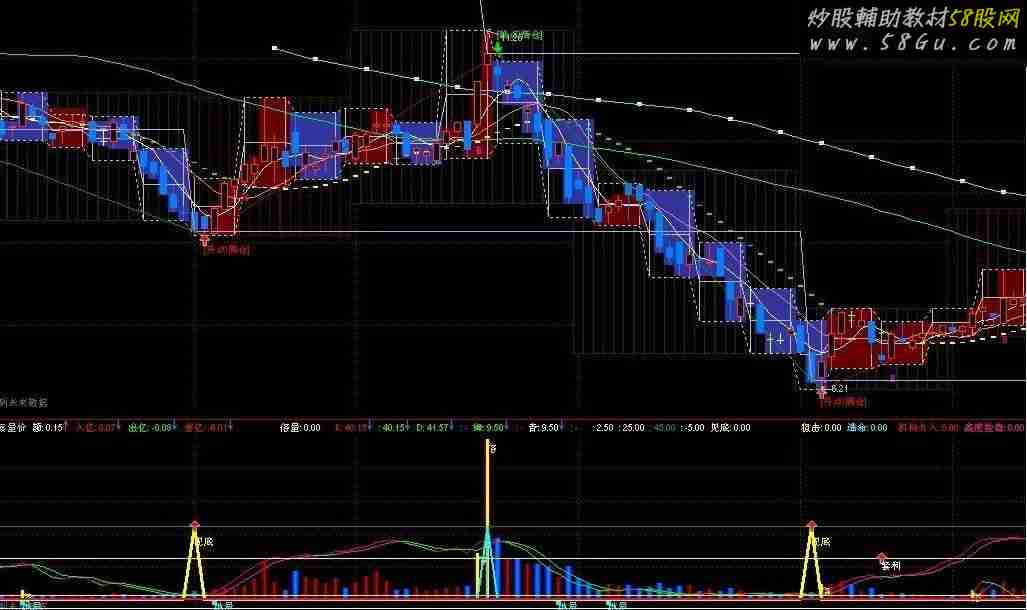 额:AMOUNT/100000000,,COLORFFFFFF,NODRAW; VAR100:=AMOUNT/((HIGH-LOW)*2-ABS(CLOSE-OPEN)); 入亿:IF(CLOSE>OPEN,VAR100*(HIGH-LOW),IF(CLOSE<OPEN,VAR100*((HIGH-OPEN) +(CLOSE-LOW)),AMOUNT/2))/100000000,COLORRED,NODRAW; 出亿:IF(CLOSE>OPEN,0-VAR100*((HIGH-CLOSE)+(OPEN-LOW)), IF(CLOSE<OPEN,0-VAR100*(HIGH-LOW),0-AMOUNT/2))/100000000,COLOR00FF00,NODRAW; 差亿:入亿+出亿,COLORRED,NODRAW;量:=V/CONST(HHV(V,90))*30,COLORRED; {粉色} STICKLINE(CLOSE>=OPEN,0,量*1,2.4,0),COLOR000033; STICKLINE(CLOSE>=OPEN,0,量*1,1.6,0),COLOR000055; STICKLINE(CLOSE>=OPEN,0,量*1,0.8,0),COLOR000077; STICKLINE(CLOSE>=OPEN,0,量*1,0.0,0),COLOR0000DD; {蓝色} STICKLINE(CLOSE<=OPEN,0,量*1,2.4,0),COLOREC0000; STICKLINE(CLOSE<=OPEN,0,量*1,1.6,0),COLORFF4600; STICKLINE(CLOSE<=OPEN,0,量*1,0.8,0),COLORFF6300; STICKLINE(CLOSE<=OPEN,0,量*1,0,0),COLORFF8B00; {倍量} 倍量:(量/REF(量,1)>=1.91 AND COUNT(C>O,1)) OR (L>REF(H,1) AND COUNT(O>C,1) AND 量/REF(量,1)>=1.91),NODRAW,COLORYELLOW; STICKLINE(倍量,0,量,0.0001,0),COLOR00FFFF; DRAWTEXT(倍量,量*0.99,'倍'),COLORYELLOW,LINETHICK1; {資金线} VAR88:=LLV(LOW,21); VAR99:=HHV(HIGH,21); K:EMA((CLOSE-VAR88)/(VAR99-VAR88)*50,6),COLORRED,LINETHICK1;{红} IF(K<= REF(K,1),K,DRAWNULL),COLORGREEN,LINETHICK1;{绿} D:EMA(0.667*REF(K,1)+0.333*K,2),COLORGREEN,LINETHICK1;{绿} IF(D>= REF(D,1),D,DRAWNULL),COLORMAGENTA,LINETHICK1;{洋红} {DRAWICON(LONGCROSS(D,K,0.1),D,2),COLORRED,LINETHICK1; DRAWICON(LONGCROSS(K,D,0.1),K,1),COLORGREEN,LINETHICK1;} {绝顶公式} VAR11:=(HHV(HIGH,8)-CLOSE)/(HHV(HIGH,8)-LLV(LOW,8))*100-70; VAR22:=SMA(VAR11,8,1)+100; VAR33:=(CLOSE-LLV(LOW,8))/(HHV(HIGH,8)-LLV(LOW,8))*100; VAR44:=SMA(VAR33,3,1); VAR55:=SMA(VAR44,3,1)+100; VAR66:=VAR55-VAR22; 绿:IF(VAR66>100,VAR66-100,0),COLORGREEN,LINETHICK1;{绿,量减} IF(绿>=REF(绿,1),绿,DRAWNULL),COLORRED,LINETHICK1; {红:IF(REF(绿,1)<=绿,绿,REF(绿,1)),COLORRED,LINETHICK0;{红} {IF(红<=REF(红,1),红,DRAWNULL),COLORCYAN,LINETHICK0;{青} 青:IF(REF(绿,1)>绿,绿,REF(绿,1)),COLORCYAN,LINETHICK0;{青}; IF(青>=REF(青,1),青,DRAWNULL),COLORMAGENTA,LINETHICK1;{洋红,量增} {地量买点} STICKLINE(CROSS(0.9,1/VOL*1000>0.01 AND "KDJ.J"<0),量<0,-3,1.2,0),COLORCYAN,LINETHICK1; DRAWTEXT(CROSS(0.9,1/VOL*1000>0.01 AND "KDJ.J"<0),(量<0-3),'地量'),COLORCYAN,LINETHICK1; 2.5,COLOR00FFFF,LINETHICK1; 25,COLOR00FFFF,LINETHICK1; 45,COLORLICYAN,LINETHICK1; -5,COLORWHITE;VAR1:=SMA(MAX(CLOSE-REF(CLOSE,1),0),34,1)/SMA(ABS(CLOSE-REF(CLOSE,1)),7,1)*100; VAR2:=SMA(MAX(CLOSE-REF(CLOSE,1),0),13,1)/SMA(ABS(CLOSE-REF(CLOSE,1)),13,1)*100; VAR3:=BARSCOUNT(CLOSE); VAR4:=VAR1<20 AND VAR2<23 AND VAR3>35; VAR5:=VAR4 AND COUNT(VAR4,1)=1; VAR6:=EMA(CLOSE,21)-EMA(CLOSE,8); VAR7:=EMA(VAR6,5); VAR8:=TROUGHBARS(3,6,1)<4 AND CROSS(VAR6,VAR7); VAR9:=(HIGH+LOW+CLOSE)/3; VAR10:=IF(TROUGHBARS(3,16,1)=0 AND HIGH>LOW+0.04,45,0); VAR110:=(VAR9-MA(VAR9,14))/(0.015*AVEDEV(VAR9,14)); 见底: VAR10,COLORYELLOW,LINETHICK3; DRAWTEXT(VAR110<-110 AND 见底>0,40,'见底'), ,COLORYELLOW; DRAWTEXT(见底 AND VAR11<-100 AND VAR8 AND VAR5>0,4.1,'★组合5分钟线选股思路获利5%以上'), , COLORRED; DRAWICON(见底>0,45,1); XX:=EMA(CLOSE,30)-EMA(CLOSE,17); AA:=EMA(XX,5); YY:=EMA(XX,13); 短:=TROUGHBARS(3,10,1)<1 AND CROSS(XX,AA); DRAWICON(短>0,1.8,18); DRAWTEXT(短>0,1.8,'慧眼'),COLORWHITE; 枪:=TROUGHBARS(3,5,1)<1 AND XX<YY; 短1:=IF(枪>0,25,0),STICK,COLORF0F000,LINETHICK4; DRAWICON(短1>0,25,1 ); DRAWTEXT(短1>0,25,'套利'),COLORWHITE; 短2:=CROSS(XX,AA) AND TROUGHBARS(3,7,1)<1; DRAWICON(短2>0,1.4,1 ); DRAWTEXT(短2,2.5,'小牛'),COLORWHITE; 狙击:短 OR 短1 OR 短2,COLORYELLOW,LINESTICK,LINETHICK2; VAR12:=PEAKBARS(3,15,1)<10; VAR13:=IF(VAR12=1,2,0); 顶:= IF(VAR13=2,2,0); 逃命:IF(顶>REF(顶,1),45,0),COLORCYAN,LINESTICK,LINETHICK2; DRAWTEXT(逃命=3,40,'逃命'),COLORWHITE; RSV:= (CLOSE-LLV(LOW,9))/(HHV(HIGH,9)-LLV(LOW,9))*5; FASTK:=SMA(RSV,3,1); {金:SMA(FASTK,3,1),COLORLIGREEN,COLORYELLOW; 阴阳:SMA(金,5,1),COLORLICYAN,COLORMAGENTA;} VAR14:=TROUGHBARS(3,15,1)<10; VAR15:=IF(VAR14=1,50,0); 底部:=IF(VAR15=50,35,0); 机构介入:底部/60,0,LINETHICK2,LINESTICK,COLORRED; VAR16:=EMA(EMA(CLOSE,13),13); 控盘:= (VAR16-REF(VAR16,1))/REF(VAR16,1)*1000,COLORFFCCCC,POINTDOT; 无庄控盘:=控盘<0,LINESTICK; 有庄控盘:=控盘>REF(控盘,1) AND 控盘>0,COLORMAGENTA,LINETHICK2,LINESTICK; VAR17:=100*WINNER(CLOSE*0.95); 主力出货:=控盘<REF(控盘,1) AND 控盘>0,COLORGREEN,LINESTICK; 高度控盘:VAR17>50 AND COST(85)<CLOSE AND 控盘>0,COLORLIMAGENTA,LINESTICK;