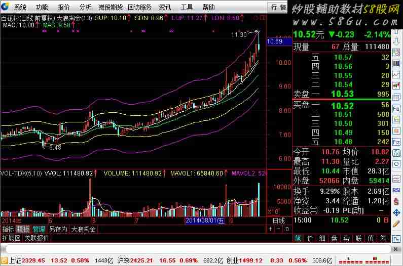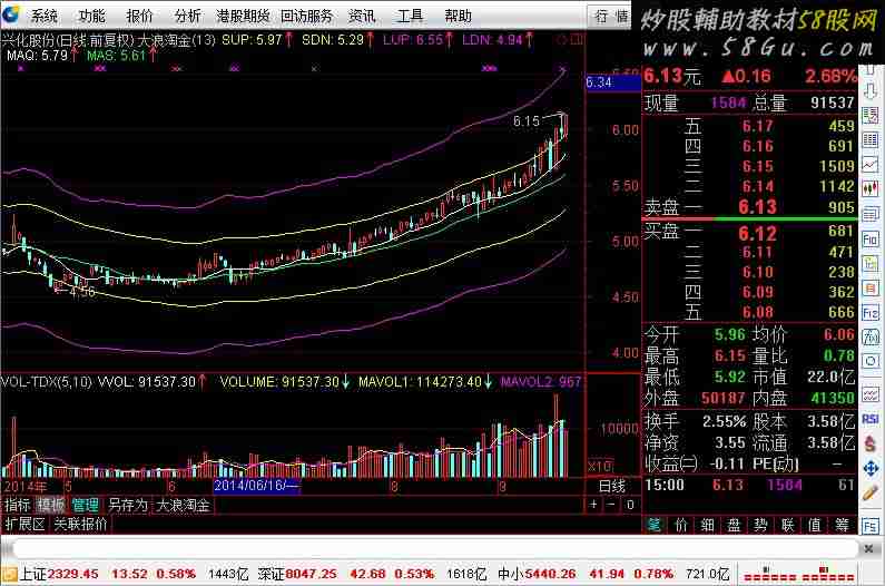 指标原理 该指标融合了薛斯通道理论和均线理论的精华,运用得当对买卖点决策有非常好的参考意义。所谓通道理论,也即我们细心观察就能够发现,在行情走出中线趋势的时候,无论是上证指数还是个股走势,价格往往是沿着一个方向做趋势运动。另外,股价沿着一个方向做趋势运动,有两个概念有助于分析判断:一个是角度;二是股价不断创新高的回撤程度。 这两个概念是分析个股波段趋势的核心。分析股票价格的本质是时间与空间,我们买进一个股票的目标是:在最短的时间内,获取最大的上升空间。因此,我们在盘面观察上,理论应该买角度越大,股价回撤越小的股票,所以假如你对股价背后的上涨逻辑非常有信心,也可以追进连续涨停的股票,这种就是价格表现得最极端的情况了。 作为技术分析派的投资者,往往对隐藏在股票背后的上涨逻辑不够重视,在买入和卖出一个股票的时候很有可能连公司最近发生了什么也不清楚。所以对于大多数投资者来说,买入角度大于30度小于60度并且“小碎步”上行的股票是最为稳妥的。 而现在用的这个指标体现的正是这一投资理念。 股价在上涨初期,随着行情走好不断有场外资金介入推高股价,每一个个股因为自身的独特性和唯一性表现出来的角度和回撤度都不同,角度和回撤度直接构成了通道,从而使得股价能够表现出一直在通道内运行。 指标的最佳买卖点 本人利用这个指标来做波段和短线。波段的最佳买点在判断通道形成以后,回踩白线或者绿线。喜欢做高抛低吸的投资者可以参考上面的黄线卖出。 当股价由黄绿通道逐渐上升到紫黄线通道的时候,表明股价已经出现加速的征兆,此时如果股价成功突破将会是另一个波段与短线的介入点。如上图的兴业股份在冲破黄绿通道上轨调整以后继续上涨,表明股价很有可能沿着紫黄通道继续上行。当然,在紫黄线通道内的卖点在哪里,相信不用我明确指出了吧,你懂得。 针对不同的买点,最好给自己设置相对于的止损点,这个指标的通道线不仅容易判断买卖点也非常容易帮助你设置止损点。 具体指标设置 打开通达信软件公式管理器,选择“趋势型”或者“路径型”新建都可以,以下是该指标的具体公式(复制黏贴进去就可以了)VAR2:=CLOSE*VOL;VAR3:=EMA((EXPMA(VAR2,3)/EXPMA(VOL,3)+EXPMA(VAR2,6)/EXPMA(VOL,6)+EXPMA(VAR2,12)/EXPMA(VOL,12)+EXPMA(VAR2,24)/EXPMA(VOL,24))/4,N);SUP:1.06*VAR3 COLOR00FFFF;SDN:VAR3*0.94 COLOR00FFFF;VAR4:=EXPMA(CLOSE,9);LUP:EXPMA(VAR4*1.14,5) COLORFF00FF;LDN:EXPMA(VAR4*0.86,5) COLORFF00FF;MAQ:MA(CLOSE,10) COLORFFFFFF;MAS:MA(CLOSE,20) COLOR40FF00;另外还有个参数必须设置,参数N;最小2.00;最大250.00;缺省13.00;最后你取个你自己喜欢的公式名字,保存OK。   |