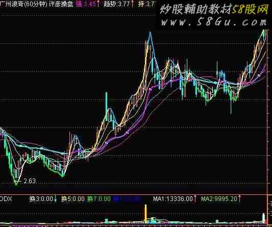AA:=ABS((2*CLOSE+HIGH+LOW)/4-MA(CLOSE,30))/MA(CLOSE,30); 强:DMA((2*CLOSE+LOW+HIGH)/4,AA),LINETHICK3,COLORMAGENTA; CC:=(CLOSE/强);A1:=MA(CC*(2*CLOSE+HIGH+LOW)/4,3); A2:=((A1-强)/强)/3; 趋势:A1-A2*A1,COLORWHITE,LINETHICK3; 强角:=ATAN(100*(强/REF(强,1)-1))*180/3.1416; 趋角:=ATAN(100*(趋势/REF(趋势,1)-1))*180/3.1416; 持:IF(趋势>=强 AND 趋势>=REF(趋势,1),趋势,DRAWNULL)LINETHICK3,COLORYELLOW; 减:IF(趋角<=REF(趋角,1) AND 趋势>=强 ,趋势,DRAWNULL),LINETHICK3,COLORFFAA0D; 减1:IF(趋势<=REF(趋势,1) ,趋势,DRAWNULL),LINETHICK3,COLORFFAA0D; 空:IF(趋势<强,趋势,DRAWNULL),LINETHICK3,COLORGREEN; 买:IF(趋势<=强 AND 趋角>=-10 AND COUNT(C>趋势,2)=2 AND 趋势>=REF(趋势,1),趋势,DRAWNULL),LINETHICK3,COLORWHITE; IF(趋势>=强 AND REF(趋势,2)>=REF(趋势,1) AND 趋势>=REF(趋势,1) AND ABS(强-趋势)/趋势*100<=10,趋势,DRAWNULL),LINETHICK3,COLORWHITE;弱:IF(趋势<=强,强,DRAWNULL),LINETHICK2,COLORCYAN; MA1:MA(C,5),COLORWHITE; MA2:MA(C,10),COLORYELLOW; MA3:MA(C,20),COLORLIBLUE,; MA4:MA(C,30),COLORCC33FF,; |