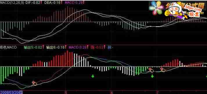 {彩色MACD} DIFIF1:=EMA(CLOSE,12) - EMA(CLOSE,26); DEAEA1:=EMA(DIFIF1,9); MACD1:=2*(DIFIF1-DEAEA1),STICK; MACD2:=EMA(MACD1,3); STICKLINE(MACD1>MACD2 AND MACD1>0,0,MACD1,1,0),COLORRED; STICKLINE(MACD1>MACD2 AND MACD1<0,0,MACD1,1,0),COLORGREEN; STICKLINE(MACD1<MACD2,0,MACD1,1,0),COLORCBCBC0; STICKLINE(MACD1>=0 OR MACD1<=0,0,0,50,1),COLORWHITE; DIFIF1,COLOR33FF33,LINETHICK1; DEAEA1,COLORYELLOW,LINETHICK1; MACD:MACD1,NODRAW,COLORMAGENTA; 强:IF(DIFIF1>=DEAEA1,DIFIF1,DRAWNULL),COLORRED,LINETHICK1; 弱:IF(DEAEA1>=DIFIF1,DEAEA1,DRAWNULL),COLORFF9900,LINETHICK1; DRAWICON(CROSS(DIFIF1,DEAEA1),DIFIF1+0.1,1); DRAWICON(CROSS(DEAEA1,DIFIF1),-0.5,2); DRAWTEXT(CROSS(DIFIF1,DEAEA1),DIFIF1,'○'),LINETHICK1, COLORYELLOW; |