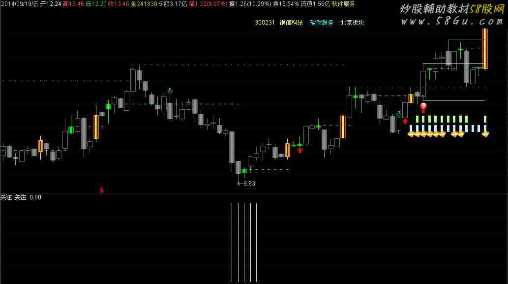 这是非常普通的源码,当信号出现就关注并加入自己的股池。信号消失后2~3天结合自己的指标在决策,当然走牛就要看你自己的财运了。