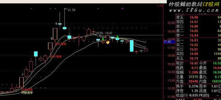 N:=5;N1:=3;H1:EMA(CLOSE,N);H2:EMA(H1,N1);VAR1:=(HHV(HIGH,36)-CLOSE)/(HHV(HIGH,36)-LLV(LOW,36))*100;VAR2:=SMA(VAR1,5,1);VAR3:=SMA(VAR2,8,1);VAR4:=CROSS(VAR2,VAR3) AND VAR3<20;VAR5:=CLOSE>LLV(CLOSE,60)+0.3*LLV(CLOSE,60) AND VAR4;VAR6:=IF(CLOSE>1000,VAR4,VAR5);DRAWICON(VAR6,H,2);DRAWTEXT(CROSS(H1,H2),H1*0.99,'○买点'),COLORYELLOW;MID:=(3*CLOSE+LOW+OPEN+HIGH)/6;取舍线:(20*MID+19*REF(MID,1)+18*REF(MID,2)+17*REF(MID,3)+16*REF(MID,4)+15*REF(MID,5)+14*REF(MID,6)+13*REF(MID,7)+12*REF(MID,8)+11*REF(MID,9)+10*REF(MID,10)+9*REF(MID,11)+8*REF(MID,12)+7*REF(MID,13)+6*REF(MID,14)+5*REF(MID,15)+4*REF(MID,16)+3*REF(MID,17)+2*REF(MID,18)+REF(MID,20))/210,LINETHICK1,COLORYELLOW;STICKLINE(C>取舍线,O,C,2,0),COLORRED;STICKLINE(C<取舍线,O,C,2,0),COLORGREEN;DRAWICON(CROSS(C,取舍线),L,1);DRAWICON(CROSS(取舍线,C),H,2);DRAWICON(CROSS(C,取舍线),L,26);{缺口}STICKLINE(L>REF(H,1) ,REF(H,1),L,1,-1),COLOR990099;STICKLINE(H<REF(L,1) ,REF(L,1),H,1,-1),COLOR999900;DRAWKLINE(H,O,L,C);{涨停分类}个线:=EMA(EMA(CLOSE,30),9);大线:=EMA(EMA(INDEXC,45),9);个股1:=CLOSE/个线*100;大盘1:=INDEXC/大线*100;GGQD:=(个股1-大盘1);回光返照:=COUNT(CROSS(MA(C,15),MA(C,5)),N1)=0 AND HHV(GGQD,20)>23 AND MA(C,5)>MA(C,30) AND GGQD<HHV(GGQD,30) AND GGQD>5 AND (C-REF(C,1))/REF(C,1)*100>9.6 AND C=H,;ZT:=(C-REF(C,1))/REF(C,1)*100>8.5,COLORWHITE;开盘:=IF(REF(ZT,1)>0 ,(O-REF(C,1))/REF(C,1)*100,0),NODRAW;BIAS1 :=(CLOSE-MA(CLOSE,6))/MA(CLOSE,6)*100;BIAS2 :=(CLOSE-MA(CLOSE,24))/MA(CLOSE,24)*100;BIA:=(BIAS1-BIAS2);BIS:=LLV(BIAS1,3);超跌涨停:=ZT>0 AND BIS<0 AND BIA>5 AND MA(C,5)<MA(C,60);DRAWTEXT(超跌涨停,L*0.98,'超跌涨停'),COLORGREEN;MA5:=MA(C,5);MA10:=MA(C,10);MA20:=MA(C,20) ;MA30:=MA(C,30);MA60:=MA(C,34);F1:=(MA5-MA10)/MA10*100;F2:=(MA10-MA20)/MA10*100;F3:=(MA20-MA60)/MA10*100;拉升涨停:=F1>1 AND F2>3 AND F3>0 AND ZT>0;A1:=REF(C,20)=HHV(C,2*20+1);B1:=FILTER(A1,20);C1:=BACKSET(B1,20+1);HD:=FILTER(C1,20);A:=REF(H,BARSLAST(HD));RSI1:=SMA(MAX(CLOSE-REF(CLOSE,1),0),5,1)/SMA(ABS(CLOSE-REF(CLOSE,1)),5,1)*100;钝化涨停:=ZT>0 AND RSI1=HHV(RSI1,5) AND RSI1>80;钝化涨停1:=GGQD>15 AND ZT>0 AND RSI1=HHV(RSI1,5) AND RSI1>80 AND REF(GGQD>15 AND ZT>0 AND RSI1=HHV(RSI1,5) AND RSI1>80,1)=0;新股首次:=COUNT(ZT>0,BARSCOUNT(C))=1 AND ZT>0 AND FINANCE(42)<100;突破涨停:=CROSS(C,A) AND ZT>0;DRAWTEXT(回光返照,L*0.99,'回光返照'),COLORBLUE;DRAWTEXT(拉升涨停,L*0.98,'拉升涨停'),COLORRED;DRAWTEXT(突破涨停,L*0.97,'突破涨停'),COLORYELLOW;DRAWTEXT(新股首次,L*0.96,'新股首次'),COLORMAGENTA;DRAWTEXT(钝化涨停1,L*0.95,'钝化涨停1'),COLORLIRED;DRAWTEXT(钝化涨停,L*0.94,'钝化涨停'),COLORLIBLUE;STICKLINE(CLOSE,REF(HIGH,BARSLAST(涨停)),REF(HIGH,BARSLAST(涨停)),0.1,0),COLORDDDD00;STICKLINE(CLOSE,REF(LOW,BARSLAST(涨停)),REF(LOW,BARSLAST(涨停)),0.1,0),COLOR00DDDD;    |