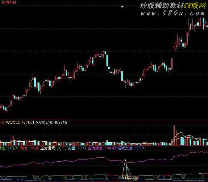 Var2:=REF(LOW,1); Var3:=SMA(ABS(LOW-Var2),13,1)/SMA(MAX(LOW-Var2,0),13,1)*100; Var4:=EMA(IF(CLOSE*1.2,Var3*13,Var3/13),13); Var5:=LLV(LOW,34); Var6:=HHV(Var4,34); Var7:=IF(LLV(LOW,56),1,0); Var8:=EMA(IF(LOW<=Var5,(Var4+Var6*2)/2,0),3)/618*Var7; Var9:=EMA(CLOSE,5); Var10:=(CLOSE-MA(CLOSE,34))/MA(CLOSE,34)*(-10); STICKLINE(Var9>REF(Var9,1),0,Var9*0.08,4,1),color10E410; 减仓:IF(Var9>REF(Var9,1),Var9,0),color10E410,linethick0; STICKLINE(Var9<REF(Var9,1),0,Var9*0.08,4,1),color1010FF; 增仓:IF(Var9<REF(Var9,1),Var9,0),color1010FF,linethick0; STICKLINE(Var8>REF(Var8,1),0,Var8,4,1),color10FFFF; 主力进场:IF(Var8>REF(Var8,1),Var8*8,0),color10FFFF,linethick0; STICKLINE(Var8<REF(Var8,1),0,Var8,4,1),colorFFF810; 洗缓:IF(Var8<REF(Var8,1),Var8*10,0),colorFFF810,linethick0; 主力持仓:(LOW*5),colorFF10FF,linethick0; 增减力度:Var10,colorFF7676; XL1:=MA(LOW,2)*0.96; XL2:=MA(LOW,26)*0.85; XL3:=REF(XL1,1)<XL2 AND REF(XL1,1)<XL1 AND REF(XL1,1)<REF(XL1,2); STICKLINE(XL3,0,Var8*3,4,0),Color006EFF; DRAWTEXT(XL3,Var8*2,'买'),Color006EFF; ↑买:DRAWICON(XL3,0,4),COLORRED;