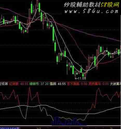 A1:=DATE <= 1070615; A2:=(100 * (CLOSE - (MA(CLOSE,30)))) / (MA(CLOSE,30)); A3:=100 - ((90 * ((HHV(HIGH,20)) - CLOSE)) / ((HHV(HIGH,20)) - (LLV(LOW,20)))); A4:=100 - (MA(((100 * ((HHV(HIGH,6)) - CLOSE)) / ((HHV(HIGH,6)) - (LLV(LOW,6)))),28)); A5:=MA(A4,6); 红持股:IF((A3 < A5),A5,A3),COLORRED; 绿持币:IF((A3 > A5),A5,A3),COLORGREEN; 强弱:(A5),LINETHICK1,COLORYELLOW; A6:=(3 * (SMA((((CLOSE - (LLV(LOW,27))) / ((HHV(HIGH,27)) - (LLV(LOW,27)))) * 100),5,1))) - (2 * (SMA((SMA((((CLOSE - (LLV(LOW,27))) / ((HHV(HIGH,27)) - (LLV(LOW,27)))) * 100),5,1)),3,1))); A7:=(10); 百万测底:((CROSS(A6,A7)) * 75) * A1,LINETHICK2,COLOR0000FF; A8:=(REF(CLOSE,1)) / CLOSE; A9:=MIN((MA(((AMOUNT / VOL) / 100),15)),(EMA(((AMOUNT / VOL) / 100),15))); A10:=((1 - ((SMA(((LOW * A8) - (A8 / 10)),6,1)) / (EMA(((AMOUNT / VOL) / 100),15)))) * 100) - (100 / 10); A11:=((((1 - ((MA((LOW - (A8 / 10)),6)) / A9)) * (DMA(CLOSE,(VOL / CAPITAL)))) / (MA(LOW,6))) * 100) - (100 / 10); A12:=((((A10 + (A11 / 10)) > 0) AND (DATE > 1000101)) AND (DATE < 1991231)) AND ((COUNT((((1 - (CLOSE / (REF(CLOSE,1)))) > 0.099) AND ((1 - ((REF(CLOSE,1)) / (REF(CLOSE,2)))) > 0.099)),20)) < 3); A13:=(((((((A10 + (A11 / 10)) > -3.688) AND (DATE > 1000101)) AND (DATE < 1991231)) AND ((CLOSE / (REF(CLOSE,1))) > 1.02)) AND ((COUNT((((1 - (CLOSE / (REF(CLOSE,1)))) > 0.099) AND ((1 - ((REF(CLOSE,1)) / (REF(CLOSE,2)))) > 0.099)),20)) < 3)) AND (((REF(CLOSE,1)) / (REF(CLOSE,2))) < 0.95)) AND ((CLOSE / (HHV(HIGH,20))) < 0.855); 灵桥黑码:((IF(((((100 < 100) AND ((A10 + (A11 / 10)) > 0)) AND (DATE > 1000101)) AND (DATE < 1991231)),(A12 = 1),(A13 = 1))) * 100) * A1,LINETHICK2,COLORRED; A14:=EMA(CLOSE,8); A15:=EMA(A14,20); A16:=CROSS(A14,A15); A17:=A14 < (EMA(CLOSE,120)); 大波黑码起步:((A16 AND A17) * 75) * A1,LINETHICK2,COLORYELLOW; A18:=SUM((IF((CLOSE > (REF(CLOSE,1))),VOL,(IF((CLOSE < (REF(CLOSE,1))),(0 - VOL),0)))),0); A19:=SUMBARS(VOL,CAPITAL); A20:=(IF((CLOSE > (LLV(CLOSE,A19))),1,-1)) * (IF((A18 > (LLV(A18,A19))),1,-1)); A21:=IF((A20 = -1),1,0); A22:=(COUNT((A21 = 1),8)) > 2; A23:=((SUM(AMOUNT,13)) / ((AMOUNT / VOL) / 100)) / 100; A24:=DMA((((((3 * HIGH) + LOW) + OPEN) + (2 * CLOSE)) / 7),(VOL / A23)); A25:=(((CLOSE - A24) / A24) * 100) < -15; A26:=((CLOSE - (MIN(((REF(CLOSE,5)) * 0.865),((REF(CLOSE,21)) * 0.772)))) / CLOSE) < 0.05; A27:=REF(LOW,1); A28:=((SMA(ABS((LOW - A27)),3,1)) / (SMA((MAX((LOW - A27),0)),3,1))) * 100; A29:=EMA((IF((CLOSE * 1.2),(A28 * 10),(A28 / 10))),3); A30:=LLV(LOW,38); A31:=HHV(A29,38); A32:=IF((LLV(LOW,90)),1,0); A33:=((EMA((IF((LOW <= A30),((A29 + (A31 * 2)) / 2),0)),3)) / 618) * A32; (STICKLINE(A33,0,A33,6,1)) ,COLORBLUE; 底部不买你后悔:(IF(((A25 AND A26) AND A22),60,0)) * A1; |