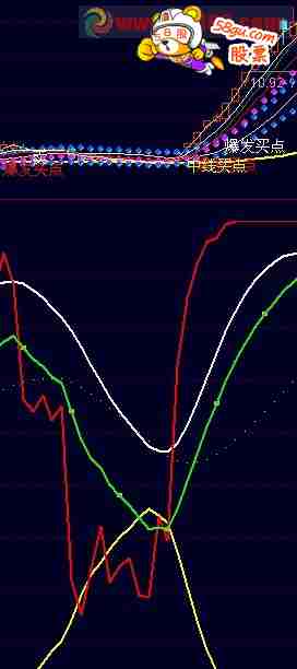 P:=2; VAR3:=1; H1:=L; H2:=H; CC:=C; RSV:= (CC-LLV(H1,9))/(HHV(H2,9)-LLV(H1,9))*100; FASTK:=SMA(RSV,3,1); Y1A:=((SMA(FASTK,3,1))*VAR3/2+40)*1.1; Y1:=SMA(Y1A,3,1); 阳:Y1,LINETHICK2; RSV1:= (HHV(H2,9)-CC)/(HHV(H2,9)-LLV(H1,9))*100; Y2A:=(SMA(RSV1,3,1)*VAR3/2)*1.1; Y2:=SMA(Y2A,3,1); 阴:Y2,LINETHICK2;LC := REF(CC,1); RSI1:=SMA(MAX(CC-LC,0),13,1)/SMA(ABS(CC-LC),13,1)*100; RSI2:=SMA(MAX(CC-LC,0),6,1)/SMA(ABS(CC-LC),6,1)*100; RSI3:=IF(RSI2>50,RSI2*1.05,RSI2); RSV3:=(CC-LLV(H1,54))/(HHV(H2,54)-LLV(H1,54))*100; RSI4:=IF(RSI3>100,100,RSI3); K:=SMA(RSV,3,1); D:=SMA(K,3,1); RRR:= EMA(SLOPE(RSI4,3),20)*VAR3; 滑头:RSI4, COLORRED,LINETHICK2; 主力:EMA(RSI2,13),LINETHICK2; 趋势:EMA(主力,21) ,COLORYELLOW,POINTDOT;