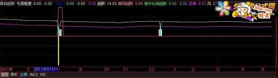 VARAA:=AMOUNT/(100*VOL); CYC13:=MA(VARAA,13); CYC34:=MA(VARAA,34); CYCMAX:=DMA(C,VOL/CAPITAL); CYS13:=(C-CYC13)/CYC13*100; CYS34:=(C-CYC34)/CYC34*100; CYSMAX:=(C-CYCMAX)/CYCMAX*100; 亏损程度: IF(CYS13<=-7,7,0),COLORWHITE,STICK,LINETHICK3; IF(CYS13<=-10,10,0),COLORFFFF33,STICK,LINETHICK3; IF(CYS13<=-16,16,0),COLORBLUE,STICK,LINETHICK3; IF(CYS13<=-20,20,0),COLOR00FF77,STICK,LINETHICK3; IF(CYS13<=-25,25,0),COLORYELLOW,STICK,LINETHICK3; IF(CYS13<=-30,30,0),COLORFF00FF,STICK,LINETHICK3; VAR1:=COST(10)*0; VAR2:=REF(HIGH,1)*1.1; VAR3:=HIGH*1.1; VAR4:=(VAR3*VOL+VAR2*(CAPITAL-VOL))/CAPITAL; VAR5:=REF(LOW,1)*0.9; VAR6:=LOW*0.9; VAR7:=(VAR6*VOL+VAR5*(CAPITAL-VOL))/CAPITAL; VAR8:=EMA(VAR7,30); VAR9:=EMA(VAR4,30); VARA:=VAR9-2; VARB:=IF(CLOSE<=VAR8,VARA,VAR9); 超跌: VARB*2.5,COLORYELLOW; TAO:=100*(1-WINNER(C)); A:=1.1*C; B:=0.9*C; ASR:=100*(WINNER(A)-WINNER(B)); 筹码超跌:IF((ASR<10) AND (TAO>90),30,0),COLOR0099FF; 短中长线超跌:IF((CYS13<(-16)) AND (CYS13>(-100)) AND (CYS34<(-20)) AND (CYS34>(-100)),40,0),COLOR00FF00; IF((CYS34<(-20)) AND (CYS34>(-100)) AND (CYSMAX<(-30)) AND (CYSMAX>(-100)),50,0),COLORFFCC00; 反弹:VARA*2.5,COLORFF00FF; 风:IF(超跌=反弹 AND CYS13<=-10 AND 筹码超跌=30,-30,0),COLORYELLOW,STICK,LINETHICK3; 云:IF(超跌=反弹 AND CYS13<=-16 AND 筹码超跌=30 AND 短中长线超跌=40,-20,0),COLORRED,STICK,LINETHICK3; |