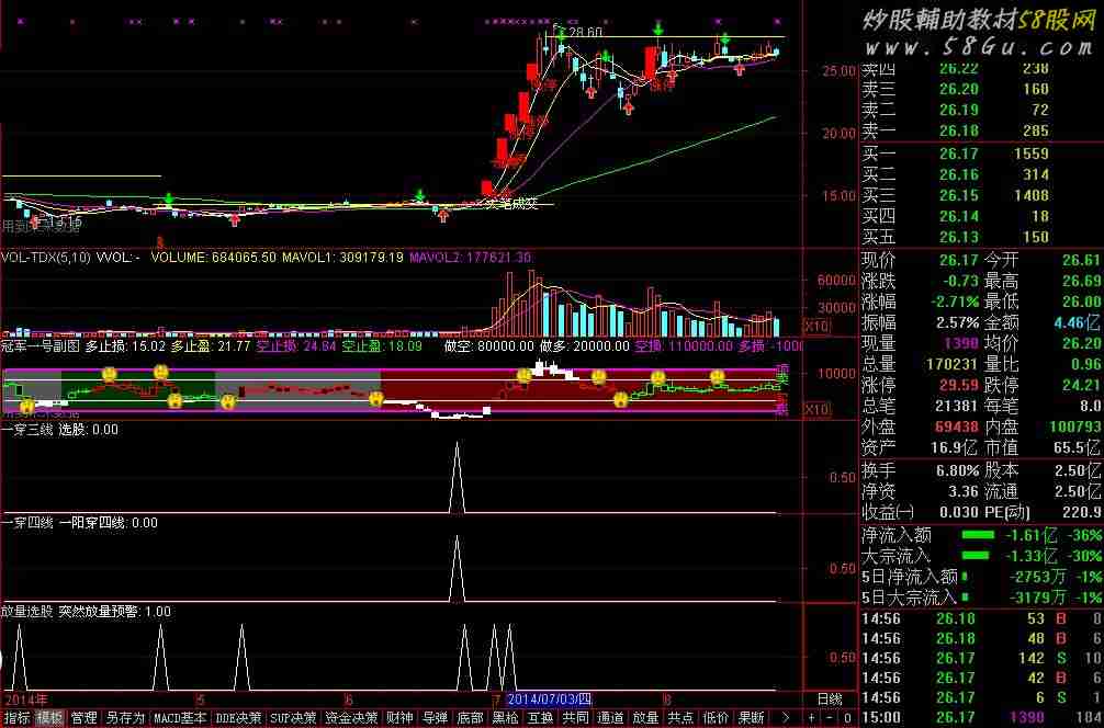 个人自用的分时抓涨停指标(通达信 分时指标 副图 贴图)