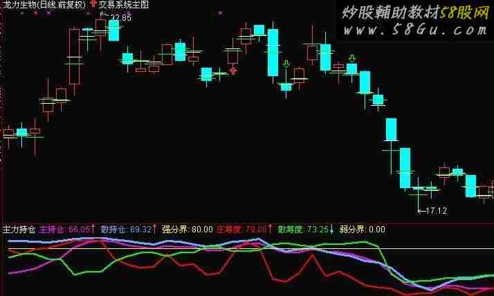 主持仓:EMA(100*(CLOSE-LLV(LOW,34))/(HHV(HIGH,34)-LLV(LOW,34)),3),COLORMAGENTA LINETHICK2; 散持仓:EMA(100*(INDEXC-LLV(INDEXL,34))/(HHV(INDEXH,34)-LLV(INDEXL,34)),3),COLORFFAA66,LINETHICK3; 强分界: 80,COLORYELLOW; 庄筹度:WINNER(C)*100 COLORRED LINETHICK2; 散筹度:(WINNER(C*1.1)-WINNER(C*0.9))*100 COLORGREEN LINETHICK2; 弱分界: 0,COLORYELLOW;