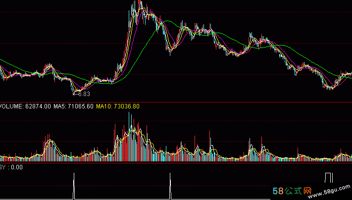 A1:=SUM(MAX(0,HIGH-REF(CLOSE,1)),26)/SUM(MAX(0,REF(CLOSE,1)-LOW),26)*100; A2:=SUM(HIGH-OPEN,26)/SUM(OPEN-LOW,26)*100; A3:=SUM(IF(CLOSE>REF(CLOSE,1),VOL,0),26); A4:=SUM(IF(CLOSE<REF(CLOSE,1),VOL,0),26); A5:=SUM(IF(CLOSE=REF(CLOSE,1),VOL,0),26); A6:=100*(A3*2+A5)/(A4*2+A5); A7:=COUNT(CLOSE>REF(CLOSE,1),12)/12*100; A8:=REF(VOL,1); A9:=SMA(MAX(VOL-A8,0),6,1)/SMA(ABS(VOL-A8),6,1)*100; MID:=REF(HIGH+LOW,1)/2; A10:=SUM(MAX(0,HIGH-MID),26)/SUM(MAX(0,MID-LOW),26)*100; DTM:=IF(OPEN<=REF(OPEN,1),0,MAX((HIGH-OPEN),(OPEN-REF(OPEN,1)))); DBM:=IF(OPEN>=REF(OPEN,1),0,MAX((OPEN-LOW),(OPEN-REF(OPEN,1)))); STM:=SUM(DTM,23); SBM:=SUM(DBM,23); A11:=IF(STM>SBM,(STM-SBM)/STM,IF(STM=SBM,0,(STM-SBM)/SBM)); A1<60 AND A2<74 AND A6<60 AND A7<20 AND A9<51 AND A10<50 AND A11<-0.3 AND C*1.32<MCST.MCST AND (C-REF(C,1))/REF(C,1)<0.04 ;