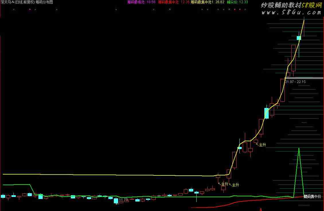 看到有这么人喜欢研究筹码,但是研究筹码真正的目的是什么,是要学会观察主力何时拉升启动,主力何时出货。筹码起到重要的辅助作用。 本指标是主图指标,不能拿到作选股指标用,因为指标选股造成内存太慢,不建议大家去制作选股指标 有人担心有COST和WINNER未来函数,担心飘移的可不下载,本指标不构成买卖。一切风险自己承担。DRAWKLINE(H,O,L,C);HB:=COST(99.9); LB:=COST(0.1); B3:=(HB-LB)/50; B31:=HB-B3; B32:=HB-2*B3; B33:=HB-3*B3; B34:=HB-4*B3; B35:=HB-5*B3; B36:=HB-6*B3; B37:=HB-7*B3; B38:=HB-8*B3; B39:=HB-9*B3; B310:=HB-10*B3; B311:=HB-11*B3; B312:=HB-12*B3; B313:=HB-13*B3; B314:=HB-14*B3; B315:=HB-15*B3; B316:=HB-16*B3; B317:=HB-17*B3; B318:=HB-18*B3; B319:=HB-19*B3; B320:=HB-20*B3; B321:=HB-21*B3; B322:=HB-22*B3; B323:=HB-23*B3; B324:=HB-24*B3; B325:=HB-25*B3; B326:=HB-26*B3; B327:=HB-27*B3; B328:=HB-28*B3; B329:=HB-29*B3; B330:=HB-30*B3; B331:=HB-31*B3; B332:=HB-32*B3; B333:=HB-33*B3; B334:=HB-34*B3; B335:=HB-35*B3; B336:=HB-36*B3; B337:=HB-37*B3; B338:=HB-38*B3; B339:=HB-39*B3; B340:=HB-40*B3; B341:=HB-41*B3; B342:=HB-42*B3; B343:=HB-43*B3; B344:=HB-44*B3; B345:=HB-45*B3; B346:=HB-46*B3; B347:=HB-47*B3; B348:=HB-48*B3; B349:=HB-49*B3; A1:=WINNER(HB)*100-WINNER(B31)*100; A2:=WINNER(B31)*100-WINNER(B32)*100; A3:=WINNER(B32)*100-WINNER(B33)*100; A4:=WINNER(B33)*100-WINNER(B34)*100; A5:=WINNER(B34)*100-WINNER(B35)*100; A6:=WINNER(B35)*100-WINNER(B36)*100; A7:=WINNER(B36)*100-WINNER(B37)*100; A8:=WINNER(B37)*100-WINNER(B38)*100; A9:=WINNER(B38)*100-WINNER(B39)*100; A10:=WINNER(B39)*100-WINNER(B310)*100; A11:=WINNER(B310)*100-WINNER(B311)*100; A12:=WINNER(B311)*100-WINNER(B312)*100; A13:=WINNER(B312)*100-WINNER(B313)*100; A14:=WINNER(B313)*100-WINNER(B314)*100; A15:=WINNER(B314)*100-WINNER(B315)*100; A16:=WINNER(B315)*100-WINNER(B316)*100; A17:=WINNER(B316)*100-WINNER(B317)*100; A18:=WINNER(B317)*100-WINNER(B318)*100; A19:=WINNER(B318)*100-WINNER(B319)*100; A20:=WINNER(B319)*100-WINNER(B320)*100; A21:=WINNER(B320)*100-WINNER(B321)*100; A22:=WINNER(B321)*100-WINNER(B322)*100; A23:=WINNER(B322)*100-WINNER(B323)*100; A24:=WINNER(B323)*100-WINNER(B324)*100; A25:=WINNER(B324)*100-WINNER(B325)*100; A26:=WINNER(B325)*100-WINNER(B326)*100; A27:=WINNER(B326)*100-WINNER(B327)*100; A28:=WINNER(B327)*100-WINNER(B328)*100; A29:=WINNER(B328)*100-WINNER(B329)*100; A30:=WINNER(B329)*100-WINNER(B330)*100; A31:=WINNER(B330)*100-WINNER(B331)*100; A32:=WINNER(B331)*100-WINNER(B332)*100; A33:=WINNER(B332)*100-WINNER(B333)*100; A34:=WINNER(B333)*100-WINNER(B334)*100; A35:=WINNER(B334)*100-WINNER(B335)*100; A36:=WINNER(B335)*100-WINNER(B336)*100; A37:=WINNER(B336)*100-WINNER(B337)*100; A38:=WINNER(B337)*100-WINNER(B338)*100; A39:=WINNER(B338)*100-WINNER(B339)*100; A40:=WINNER(B339)*100-WINNER(B340)*100; A41:=WINNER(B340)*100-WINNER(B341)*100; A42:=WINNER(B341)*100-WINNER(B342)*100; A43:=WINNER(B342)*100-WINNER(B343)*100; A44:=WINNER(B343)*100-WINNER(B344)*100; A45:=WINNER(B344)*100-WINNER(B345)*100; A46:=WINNER(B345)*100-WINNER(B346)*100; A47:=WINNER(B346)*100-WINNER(B347)*100; A48:=WINNER(B347)*100-WINNER(B348)*100; A49:=WINNER(B348)*100-WINNER(B349)*100; A50:=WINNER(B349)*100-WINNER(LB)*100; STICKLINE(ISLASTBAR,HB ,HB ,A1*15 ,0 ),COLOR666600; STICKLINE(ISLASTBAR,B31 ,B31 ,A1*15 ,0 ),COLOR666600; STICKLINE(ISLASTBAR,B32 ,B32 ,A2*15 ,0 ),COLOR666600; STICKLINE(ISLASTBAR,B33 ,B33 ,A3*15 ,0 ),COLOR666600; STICKLINE(ISLASTBAR,B34 ,B34 ,A4*15 ,0 ),COLOR666600; STICKLINE(ISLASTBAR,B35 ,B35 ,A5*15 ,0 ),COLOR666600; STICKLINE(ISLASTBAR,B36 ,B36 ,A6*15 ,0 ),COLOR666600; STICKLINE(ISLASTBAR,B37 ,B37 ,A7*15 ,0 ),COLOR666600; STICKLINE(ISLASTBAR,B38 ,B38 ,A8*15 ,0 ),COLOR666600; STICKLINE(ISLASTBAR,B39 ,B39 ,A9*15 ,0 ),COLOR666600; STICKLINE(ISLASTBAR,B310 ,B310 ,A10*15 ,0 ),COLOR666600; STICKLINE(ISLASTBAR,B311 ,B311 ,A11*15 ,0 ),COLOR666600; STICKLINE(ISLASTBAR,B312 ,B312 ,A12*15 ,0 ),COLOR666600; STICKLINE(ISLASTBAR,B313 ,B313 ,A13*15 ,0 ),COLOR666600; STICKLINE(ISLASTBAR,B314 ,B314 ,A14*15 ,0 ),COLOR666600; STICKLINE(ISLASTBAR,B315 ,B315 ,A15*15 ,0 ),COLOR666600; STICKLINE(ISLASTBAR,B316 ,B316 ,A16*15 ,0 ),COLOR666600; STICKLINE(ISLASTBAR,B317 ,B317 ,A17*15 ,0 ),COLOR666600; STICKLINE(ISLASTBAR,B318 ,B318 ,A18*15 ,0 ),COLOR666600; STICKLINE(ISLASTBAR,B319 ,B319 ,A19*15 ,0 ),COLOR666600; STICKLINE(ISLASTBAR,B320 ,B320 ,A20*15 ,0 ),COLOR666600; STICKLINE(ISLASTBAR,B321 ,B321 ,A21*15 ,0 ),COLOR666600; STICKLINE(ISLASTBAR,B322 ,B322 ,A22*15 ,0 ),COLOR666600; STICKLINE(ISLASTBAR,B323 ,B323 ,A23*15 ,0 ),COLOR666600; STICKLINE(ISLASTBAR,B324 ,B324 ,A24*15 ,0 ),COLOR666600; STICKLINE(ISLASTBAR,B325 ,B325 ,A25*15 ,0 ),COLOR666600; STICKLINE(ISLASTBAR,B326 ,B326 ,A26*15 ,0 ),COLOR666600; STICKLINE(ISLASTBAR,B327 ,B327 ,A27*15 ,0 ),COLOR666600; STICKLINE(ISLASTBAR,B328 ,B328 ,A28*15 ,0 ),COLOR666600; STICKLINE(ISLASTBAR,B329 ,B329 ,A29*15 ,0 ),COLOR666600; STICKLINE(ISLASTBAR,B330 ,B330 ,A30*15 ,0 ),COLOR666600; STICKLINE(ISLASTBAR,B331 ,B331 ,A31*15 ,0 ),COLOR666600; STICKLINE(ISLASTBAR,B332 ,B332 ,A32*15 ,0 ),COLOR666600; STICKLINE(ISLASTBAR,B333 ,B333 ,A33*15 ,0 ),COLOR666600; STICKLINE(ISLASTBAR,B334 ,B334 ,A34*15 ,0 ),COLOR666600; STICKLINE(ISLASTBAR,B335 ,B335 ,A35*15 ,0 ),COLOR666600; STICKLINE(ISLASTBAR,B336 ,B336 ,A36*15 ,0 ),COLOR666600; STICKLINE(ISLASTBAR,B337 ,B337 ,A37*15 ,0 ),COLOR666600; STICKLINE(ISLASTBAR,B338 ,B338 ,A38*15 ,0 ),COLOR666600; STICKLINE(ISLASTBAR,B339 ,B339 ,A39*15 ,0 ),COLOR666600; STICKLINE(ISLASTBAR,B340 ,B340 ,A40*15 ,0 ),COLOR666600; STICKLINE(ISLASTBAR,B341 ,B341 ,A41*15 ,0 ),COLOR666600; STICKLINE(ISLASTBAR,B342 ,B342 ,A42*15 ,0 ),COLOR666600; STICKLINE(ISLASTBAR,B343 ,B343 ,A43*15 ,0 ),COLOR666600; STICKLINE(ISLASTBAR,B344 ,B344 ,A44*15 ,0 ),COLOR666600; STICKLINE(ISLASTBAR,B345 ,B345 ,A45*15 ,0 ),COLOR666600; STICKLINE(ISLASTBAR,B346 ,B346 ,A46*15 ,0 ),COLOR666600; STICKLINE(ISLASTBAR,B347 ,B347 ,A47*15 ,0 ),COLOR666600; STICKLINE(ISLASTBAR,B348 ,B348 ,A48*15 ,0 ),COLOR666600; STICKL