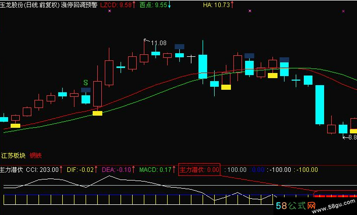 STICKLINE(主力潜伏,0,MACD*200,3.5,0),COLORRED;