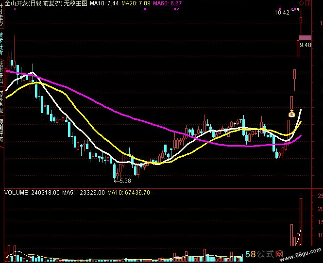 MA10:MA(C,10),LINETHICK3; MA20:MA(C,20),LINETHICK3; MA60:MA(C,60),LINETHICK3; MA30:=MA(C,30); VMA5:=MA(V,5); VMA34:=MA(V,34); DIF:=EMA(CLOSE,12)-EMA(CLOSE,26); DEA:=EMA(DIF,9); MACD1:=(DIF-DEA)*2; TYP:=(HIGH+LOW+CLOSE)/3; CCI:=(TYP-MA(TYP,14))/(0.015*AVEDEV(TYP,14)); SAR1:=SAR(4,2,20); DRAWICON(MACD1>-0.3 AND CROSS(CCI,90) AND C>MA20 AND MA10<MA20 AND MA10>MA60 AND MA60>REF(MA60,1),LOW,9);