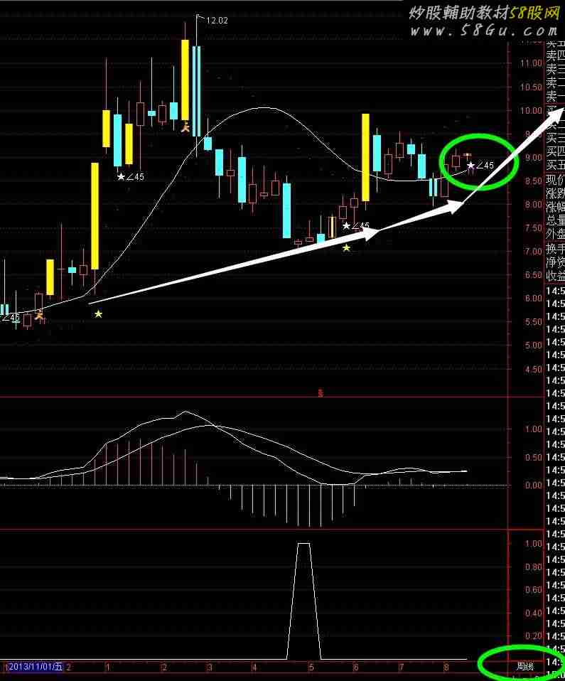 AA:=C<3;MM:=3>REF(3,1) AND REF(3,1)<REF(3,2) ;超买:MA(C,10)*IF(CAPITAL=0,1.04,1.1),POINTDOT,COLORGREEN,LINETHICK2;超卖:MA(C,10)*IF(CAPITAL=0,0.95,0.9),POINTDOT,COLORRED,LINETHICK2;趋线:EMA(((SLOPE(CLOSE,21) * 20) + CLOSE),42);获利%:WINNER(CLOSE)*100,NODRAW;V1:=ABS((2*CLOSE+HIGH+LOW)/4-MA(CLOSE,20))/MA(CLOSE,20);V2:=(1-7/100)*(DMA(CLOSE,V1));V3:=(1+7/100)*(DMA(CLOSE,V1));V5:=MA((LOW+HIGH+CLOSE)/3,5);VAR1:=CLOSE=HHV(C,4) AND (REF(C,1)>=REF(C,2) OR REF(C,1)>=REF(C,3))OR REF(C,1)=HHV(C,4) AND CLOSE>=REF(C,2) OR REF(C,2)=HHV(C,4) ANDREF(C,3)=LLV(C,4) AND C>=REF(C,1) OR REF(C,3)=HHV(C,4) ANDC>=REF(C,1) AND C>=REF(C,2);{收盘价=4日内收盘价的最高值 AND 昨收>=2日前的收盘价}VAR2:=CLOSE=HHV(C,4) AND REF(C,1)=LLV(C,4);{收盘价=4日内收盘价的最高值 AND 昨收=4日内收盘价的最低值}VAR3:=CLOSE=LLV(C,4) AND (REF(C,1)<REF(C,2) OR REF(C,1)<REF(C,3)) ORREF(C,1)=LLV(C,4) AND C<REF(C,2) OR REF(C,2)=LLV(C,4) ANDREF(C,1)=HHV(C,4) AND C<REF(C,1) OR REF(C,3)=LLV(C,4) ANDC<REF(C,1) AND C<REF(C,2);{收盘价=4日内收盘价的最低值 AND (昨收<2日前的收盘价}VAR4:=REF(C,1)=LLV(C,4) AND C>=REF(C,2) OR REF(C,2)=LLV(C,4) ANDREF(C,1)<=REF(C,3) AND REF(C,2)<REF(C,4) AND C>=REF(C,1);{昨收=4日内收盘价的最低值 AND 收盘价>=2日前的收盘价}VAR5:=REF(C,1)=HHV(C,4) AND C<REF(C,2) OR (REF(C,2)=HHV(C,4) ANDREF(C,1)>REF(C,3) OR REF(C,3)=HHV(C,4) AND REF(C,1)>REF(C,2)) ANDREF(C,2)>=REF(C,4) AND C<REF(C,1);{昨收=4日内收盘价的最高值 AND 收盘价<2日前的收盘价}VAR6:=V5>REF(V5,1) AND REF(V5,1)<REF(V5,2);{今日V5向上形成拐点}VAR7:=LOW<HHV(V5,13) AND HIGH>HHV(V5,13) AND CLOSE>REF(C,1) AND CLOSE>OPEN;VAR8:=VAR7 AND COUNT(VAR6,2);VAR9:=100*EMA(EMA(C-REF(C,1),6),6)/EMA(EMA(ABS(C-REF(C,1)),6),6);VAR10:=EMA(MA(C,13),13);VAR11:=FILTER((LLV(VAR9,2)=LLV(VAR9,7) AND COUNT(VAR9<0,2) ANDCROSS(VAR9,MA(VAR9,2)))=1,5);VAR12:=FILTER((HHV(VAR9,2)=HHV(VAR9,7) AND COUNT(VAR9>50,2) ANDCROSS(MA(VAR9,2),VAR9))=1,1);VAR13:=SMA(EMA((C-REF(C,1))/REF(C,1),5)*100,3,1)*10;VAR14:=FILTER(((CROSS(VAR13,0) OR CROSS(C,VAR10)) AND VAR11)=1,3);VAR15:=MA(C,18)>=REF(MA(C,18),3) AND CROSS(C,MA(C,18));VAR16:=VAR8 AND NOT(REF(VAR8,1));RSV:=(CLOSE-LLV(LOW,9))/(HHV(HIGH,9)-LLV(LOW,9))*100;K:=SMA(RSV,3,1);D:=SMA(K,3,1);J:=3*K-2*D;金叉:=CROSS(J,D);死叉:=CROSS(D,J);买1:=(VAR14 OR VAR15) AND VAR11;买2:=(VAR14 OR VAR15) AND VAR4;买3:=(VAR14 OR VAR15) AND VAR2;买4:=(VAR2 AND VAR11) OR (VAR4 AND VAR11);买5:=(金叉 AND VAR4) OR (金叉 AND VAR2) OR (金叉 AND VAR11);STICKLINE(金叉,OPEN,CLOSE,0.5,0),COLORYELLOW;STICKLINE(死叉,OPEN,CLOSE,0.5,0),COLOR000066;DRAWICON(VAR16,LOW-0.02,15);DRAWICON(买1 OR 买2 OR 买3 OR 买4 OR 买5 AND MM,LOW-0.05,15);DRAWICON(死叉 OR CROSS(50,VAR9) AND AA AND K>50,HIGH+0.01,2);X1:=(C+L+H)/3;BB5:=ATAN(EMA(X1,7)-REF(EMA(X1,7),1))*3.1416*10;EMA3:=EMA(C,3);DRAWTEXT(FILTER(BB5>1 AND EMA(X1,7)>REF(EMA(X1,7),1),10),LOW*0.99,'★∠45'),COLORFFFFFF;VAR81:=1;VAR82:=((((2*CLOSE)+HIGH)+LOW) / 4);低金叉进:=20;高死叉出:=90;VAR84:=LLV(LOW,5);VAR85:=HHV(HIGH,4);C1:=(EMA((((VAR82-VAR84)/(VAR85-VAR84))*100),4)*VAR81);C2:=(EMA(((0.667*REF(C1,1))+(0.333*C1)),2)*VAR81);条件1:=CROSS(C1,C2) AND C1<40;条件0:=CROSS(C2,C1) AND C1>90;TJ1:=CROSS(C1,C2);TJ2:=CROSS(C2,C1);TJ3:=CROSS(C1,C2) AND REF(C1,1)<20;TJ4:=CROSS(C2,C1) AND REF(C1,1)>80;DRAWTEXT(条件0,H*1.02,'S'),COLORBLUE;DRAWTEXT(TJ3 AND MM,L*0.98,'底');DRAWTEXT(TJ4 AND AA,H*1.02,'逃');STICKLINE((C-REF(C,1))/REF(C,1)>0.095,C,O,2,0),COLORYELLOW;水平面:=EMA(CLOSE,89);AAA:=(3*C+H+L+O)/6;短趋:=(8*AAA+7*REF(AAA,1)+6*REF(AAA,2)+5*REF(AAA,3)+4*REF(AAA,4)+3*REF(AAA,5)+2*REF(AAA,6)+REF(AAA,8))/36;中趋:=(LLV(短趋,2)+LLV(短趋,4)+LLV(短趋,6))/3;TTJ1:=VOL=HHV(VOL,10) AND VOL>2*REF(VOL,1) AND CLOSE>短趋;立桩量:=FILTER(TTJ1,5);TTJ2:=IF(BARSLAST(立桩量)=1 AND CLOSE>REF(HIGH,1),1,IF(BARSLAST(立桩量)=2 AND CLOSE>REF(HIGH,2),1,IF(BARSLAST(立桩量)=3 AND CLOSE>REF(HIGH,3),1,0)));突破:=TTJ2=1;TTJ3:=IF(BARSLAST(立桩量)=1 AND CLOSE>REF(LOW,1),1,IF(BARSLAST(立桩量)=2 AND CLOSE>REF(LOW,2),1,IF(BARSLAST(立桩量)=3 AND CLOSE>REF(LOW,3),1,0)));三天:=TTJ3=1;成立:=三天 AND 突破;条件:=FILTER(成立,3);DRAWTEXT(条件,L*0.93,'★'),COLOR00FFFF;VAR90:=((((HHV((((EMA(DCLOSE,12)-EMA(DCLOSE,26))-(EMA((EMA(DCLOSE,12)-EMA(DCLOSE,26)),9)))*2),4)<0) AND ((((EMA(DCLOSE,12)-EMA(DCLOSE,26))-(EMA((EMA(DCLOSE,12)-EMA(DCLOSE,26)),9)))*2)>REF((((EMA(DCLOSE,12)-EMA(DCLOSE,26))-(EMA((EMA(DCLOSE,12)-EMA(DCLOSE,26)),9)))*2),1)))AND (REF((((EMA(DCLOSE,12)-EMA(DCLOSE,26))-(EMA((EMA(DCLOSE,12)-EMA(DCLOSE,26)),9)))*2),1)<REF((((EMA(DCLOSE,12)-EMA(DCLOSE,26))-(EMA((EMA(DCLOSE,12)-EMA(DCLOSE,26)),9)))*2),2))) AND (REF((((EMA(DCLOSE,12)-EMA(DCLOSE,26))-(EMA((EMA(DCLOSE,12)-EMA(DCLOSE,26)),9)))*2),2)<REF((((EMA(DCLOSE,12)-EMA(DCLOSE,26))-(EMA((EMA(DCLOSE,12)-EMA(DCLOSE,26)),9)))*2),3)));DRAWTEXT(VAR90 AND MM,L*0.98,'买'),COLORRED;DRAWTEXT(CROSS(MA(C,3),MA(C,9)) AND C>=REF(C,1) AND C>O,L*0.98,'↑↑'),COLORMAGENTA;低点:=REF(LLV(L,250),3);  |