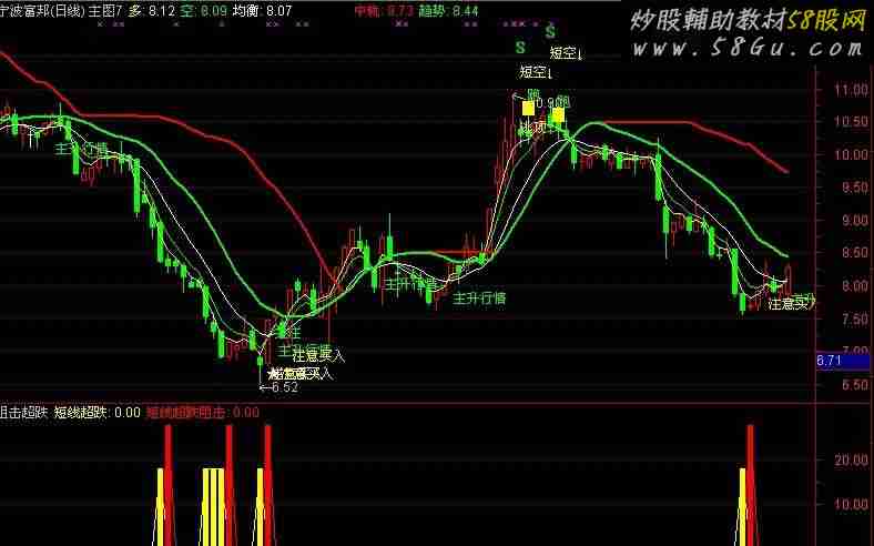 BIAS21:=(CLOSE-MA(CLOSE,21))/MA(CLOSE,21)*100; 超跌1:=BIAS21<=-17 AND BIAS21<=REF(BIAS21,1); 阻击1:=REF(超跌1,1) AND BIAS21>REF(BIAS21,1); BIAS20:=(CLOSE-MA(CLOSE,20))/MA(CLOSE,20)*100; 超跌2:=BIAS20<=-17 AND BIAS20<=REF(BIAS20,1); 阻击2:=REF(超跌2,1) AND BIAS20>REF(BIAS20,1); BIAS19:=(CLOSE-MA(CLOSE,19))/MA(CLOSE,19)*100; 超跌3:=BIAS19<=-17 AND BIAS19<=REF(BIAS19,1); 阻击3:=REF(超跌3,1) AND BIAS19>REF(BIAS19,1); BIAS18:=(CLOSE-MA(CLOSE,18))/MA(CLOSE,18)*100; 超跌4:=BIAS18<=-16 AND BIAS18<=REF(BIAS18,1); 阻击4:=REF(超跌4,1) AND BIAS18>REF(BIAS18,1); BIAS17:=(CLOSE-MA(CLOSE,17))/MA(CLOSE,17)*100; 超跌5:=BIAS17<=-16 AND BIAS17<=REF(BIAS17,1); 阻击5:=REF(超跌5,1) AND BIAS17>REF(BIAS17,1); BIAS16:=(CLOSE-MA(CLOSE,16))/MA(CLOSE,16)*100; 超跌6:=BIAS16<=-16 AND BIAS16<=REF(BIAS16,1); 阻击6:=REF(超跌6 ,1) AND BIAS16>=REF(BIAS16,1); BIAS15:=(CLOSE-MA(CLOSE,15))/MA(CLOSE,15)*100; 超跌7:=BIAS15<=-14 AND BIAS15<=REF(BIAS15,1); 阻击7:=REF(超跌7,1) AND BIAS15>REF(BIAS15,1); BIAS14:=(CLOSE-MA(CLOSE,14))/MA(CLOSE,14)*100; 超跌8:=BIAS14<=-14 AND BIAS14<=REF(BIAS14,1); 阻击8:=REF(超跌8,1) AND BIAS14>REF(BIAS14,1); BIAS13:=(CLOSE-MA(CLOSE,13))/MA(CLOSE,13)*100; 超跌9:=BIAS13<=-13 AND BIAS13<=REF(BIAS13,1); 阻击9:=REF(超跌9 ,1) AND BIAS13>REF(BIAS13,1); BIAS12:=(CLOSE-MA(CLOSE,12))/MA(CLOSE,12)*100; 超跌10:=BIAS12<=-13 AND BIAS12<=REF(BIAS12,1); 阻击10:=REF(超跌10,1) AND BIAS12>REF(BIAS12,1); BIAS11:=(CLOSE-MA(CLOSE,11))/MA(CLOSE,11)*100; 超跌11:=BIAS11<=-13 AND BIAS11<=REF(BIAS11,1); 阻击11:=REF(超跌11,1) AND BIAS11>REF(BIAS11,1); BIAS10:=(CLOSE-MA(CLOSE,10))/MA(CLOSE,10)*100; 超跌12:=BIAS10<=-12 AND BIAS10<=REF(BIAS10,1); 阻击12:=REF(超跌12,1) AND BIAS10>REF(BIAS10,1); BIAS9:=(CLOSE-MA(CLOSE,9))/MA(CLOSE,9)*100; 超跌13:=BIAS9<=-12 AND BIAS9<=REF(BIAS9,1); 阻击13:=REF(超跌13,1) AND BIAS9>REF(BIAS9,1); CD1:= 超跌1 OR 超跌2 OR 超跌3 OR 超跌4 OR 超跌5 OR 超跌6 OR 超跌7 OR 超跌8 OR 超跌9 OR 超跌10 OR 超跌11 OR 超跌12 OR 超跌13; CD2:= 阻击1 OR 阻击2 OR 阻击3 OR 阻击4 OR 阻击5 OR 阻击6 OR 阻击7 OR 阻击8 OR 阻击9 OR 阻击10 OR 阻击11 OR 阻击12 OR 阻击13; 短线超跌:IF(CD1,18,0),COLORYELLOW; 短线超跌阻击:IF(CD2,28,0),COLORRED; STICKLINE(短线超跌=18,18,0,2,0),COLOR00FFFF; STICKLINE(短线超跌阻击=28,28,0,2,0),COLOR0000FF; |