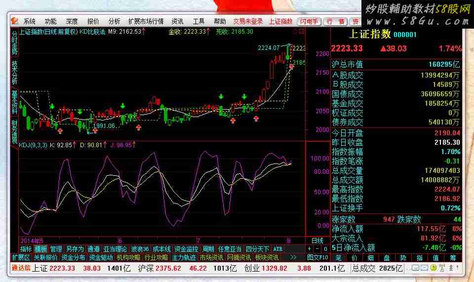 LD0:=CROSS(DX,KX); 死收:REF(C,BARSLAST(LD0)),COLOR00FF00,DOTLINE; {低点}