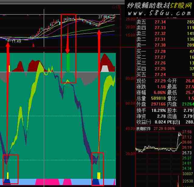 再次发布股市印钞机源码指标,让你轻松捕捉每一个波段,波段为王!!方法:结合成交量与MACD使用此指标!{波段极限}STICKLINE(C>0.1,0,100,4.8,0),COLOR668800; STICKLINE(C>0.1,-5,0,4.8,0),COLORFFB06C; VAR1:=(HHV(HIGH,36)-CLOSE)/(HHV(HIGH,36)-LLV(LOW,36))*100; VAR2:=(CLOSE-LLV(LOW,9))/(HHV(HIGH,9)-LLV(LOW,9))*100;火:=BARSLAST(EMA(CLOSE,5)<REF(EMA(CLOSE,5),1)),NODRAW;山:=COUNT(EMA(CLOSE,5)>REF(EMA(CLOSE,5),1),5),NODRAW; KL:=IF(山>0,2*火,0);趋势:=KL/2,COLOREE687B,NODRAW; VARL1:=(EMA(C,12)-EMA(C,26))*100+50; VARL2:=EMA(VARL1,9); VARL3:=((HHV(H,21)-C)/(HHV(H,21)-LLV(L,21)))*100-10; VARL4:=((C-LLV(L,21))/(HHV(H,21)-LLV(L,21)))*100; VARL5:=SMA(VARL4,13,8); VARL6:=SMA(VARL3,21,8);低位线:=IF((趋势-VARL6<(-70)),0,-5); DRAWBAND(低位线,RGB(00,300,150),-5,RGB(00,300,150)); QS:=3*SMA((CLOSE-LLV(LOW,27))/(HHV(HIGH,27)-LLV(LOW,27))*100,5,1)-2*SMA(SMA((CLOSE-LLV(LOW,27))/(HHV(HIGH,27)-LLV(LOW,27))*100,5,1),3,1);高位线:=IF((QS-VARL6>85),0,-5); DRAWBAND(高位线,RGB(255,20,147),-5,RGB(255,20,147)); K1:EMA(VAR2,5),COLORLIBLUE,NODRAW; K2:SMA(VAR2,5,1),COLORYELLOW,NODRAW; K:EMA((K1-K2),2),COLORWHITE,NODRAW; DRAWBAND(85,RGB(100,100,100),85+K,RGB(128,00,00)); KK1:=IF(K>12,90,85),COLORCYAN; KK2:=IF(K<-12,80,85),COLORCYAN; DRAWBAND(KK1,RGB(200,200,200),KK2,RGB(200,200,200)); DRAWBAND(K1,RGB(400,200,00),K2,RGB(50,300,100)); STICKLINE(C>0.1,15,15,1,0),COLORCYAN; STICKLINE(C>0.1,50,50,1,0),COLORCYAN; LC:=REF(CLOSE,1); VAR01:=C-REF(C,1); VAR02:=100*EMA(EMA(VAR01,6),6)/EMA(EMA(ABS(VAR01),6),6); MA5:=EMA(C,5); MA13:=EMA(C,13); UP:=DRAWLINE(L=LLV(L,BARSLAST(CROSS(MA13,MA5))+1),LLV(L,BARSLAST(CROSS(MA13,MA5))+1),H=HHV(H,BARSLAST(CROSS(MA5,MA13))+1),HHV(H,BARSLAST(CROSS(MA5,MA13))+1),0),COLOR0000FF; DOWN:=DRAWLINE(H=HHV(H,BARSLAST(CROSS(MA5,MA13))+1),HHV(H,BARSLAST(CROSS(MA5,MA13))+1),L=LLV(L,BARSLAST(CROSS(MA13,MA5))+1),LLV(L,BARSLAST(CROSS(MA13,MA5))+1),0),COLOR00FF00; BT:=(LLV(VAR02,2)=LLV(VAR02,7) AND COUNT(VAR02<0,2) AND CROSS(VAR02,MA(VAR02,2))) AND REF(DOWN,1)<REF(DOWN,2) AND UP>REF(DOWN,1); STICKLINE(BT,85,100,2,0),COLOR000088; STICKLINE(BT,85,100,1,0),COLOR0000CC; STICKLINE(BT,85,100,0.22,0),COLOR0000FF; TJ1:=REF(DOWN,1)<REF(DOWN,2) AND UP>REF(DOWN,1) AND C<HHV(H,21)*0.82; STICKLINE(TJ1,85,95,3,0),COLOR880088; STICKLINE(TJ1,85,95,1.5,0),COLORAA00AA; STICKLINE(TJ1,85,95,0.8,0),COLORCC00CC; STICKLINE(TJ1,85,95,0.2,0),COLORFF00FF; HR:=HHV(HIGH,55); HRY:=LLV(LOW,55); HRY11:=HR*HRY; HRY33:=SQRT(HRY11); TJ2:=REF(DOWN,1)<REF(DOWN,2) AND UP>REF(DOWN,1) AND C<HRY33; STICKLINE(TJ2,85,90,4,0),COLOR008888; STICKLINE(TJ2,85,90,2,0),COLOR00AAAA; STICKLINE(TJ2,85,90,1,0),COLOR00CCCC; STICKLINE(TJ2,85,90,0.2,0),COLOR00FFFF; {HZ_买底1} A8:=100*EMA(EMA((C-REF(C,1)),6),6)/EMA(EMA(ABS((C-REF(C,1))),6),6); UP1:=DRAWLINE(L=LLV(L,BARSLAST(CROSS(EMA(CLOSE,19),EMA(CLOSE,7)))+1),LLV(L,BARSLAST(CROSS(EMA(CLOSE,19),EMA(CLOSE,7)))+1),H=HHV(H,BARSLAST(CROSS(EMA(CLOSE,7),EMA(CLOSE,19)))+1),HHV(H,BARSLAST(CROSS(EMA(CLOSE,7),EMA(CLOSE,19)))+1),0); DOWN1:=DRAWLINE(H=HHV(H,BARSLAST(CROSS(EMA(CLOSE,7),EMA(CLOSE,19)))+1),HHV(H,BARSLAST(CROSS(EMA(CLOSE,7),EMA(CLOSE,19)))+1),L=LLV(L,BARSLAST(CROSS(EMA(CLOSE,19),EMA(CLOSE,7)))+1),LLV(L,BARSLAST(CROSS(EMA(CLOSE,19),EMA(CLOSE,7)))+1),0);买1:=IF((LLV(A8,2)=LLV(A8,7) AND COUNT(A8<0,2) AND CROSS(A8,MA(A8,2))) AND REF(DOWN,1)<REF(DOWN,2) AND UP>REF(DOWN,1),DRAWNULL,100);卖:=IF(DOWN = UP AND DOWN<REF(UP,1) AND CROSS(MA(A8,2),A8), DRAWNULL,100); STICKLINE(买1=100,0,5,4,0),COLOR00AAAA; STICKLINE(买1=100,0,5,2.5,0),COLOR00CCCC; STICKLINE(买1=100,0,5,0.5,0),COLOR00FFFF; STICKLINE(卖,85,100,2,0),COLOR006600; STICKLINE(卖,85,100,1,0),COLOR009900; STICKLINE(卖,85,100,0.22,0),COLOR00CC00; |