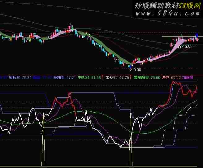 LC := REF(CLOSE,1); WLRSI:SMA(MAX(CLOSE-LC,0),13,1)/SMA(ABS(CLOSE-LC),13,1)*100,COLORRED,LINETHICK2; VAR1:=REF(SMA(WLRSI,3,1),3); IF(WLRSI<55,WLRSI,DRAWNULL),COLORWHITE,LINETHICK2; DDM:VAR1; 超买:REF(HHV(WLRSI,63),1),COLORBLUE; 短超买:REF(HHV(WLRSI,26),1),COLORFF8080; 超卖:REF(LLV(WLRSI,63),1),COLORBLUE; 短超卖:REF(LLV(WLRSI,26),1),COLORFF8080; 中轨34:MA(WLRSI,M),COLORGREEN; 雪短20:LLV(WLRSI,20),COLORLIGRAY; 雪狼超买:75,POINTDOT; 强势:60,COLORLIRED POINTDOT; 加速线:55,COLORMAGENTA POINTDOT; 弱势:40,COLORRED POINTDOT; 雪狼超卖:25,COLORRED POINTDOT; VAR2:=TROUGHBARS(3,15,1)<10; VAR3:=PEAKBARS(3,15,1)<10; VAR4:=IF(VAR2=1,50,0); VAR5:=IF(VAR3=1,50,0); 底部:=IF(VAR4=50,10,0); 能量:0,COLORWHITE,LINETHICK2; 雪狼狠买:IF(底部=10 AND REF(底部,1)=10 AND REF(底部,2)=0,50,0),COLORYELLOW;