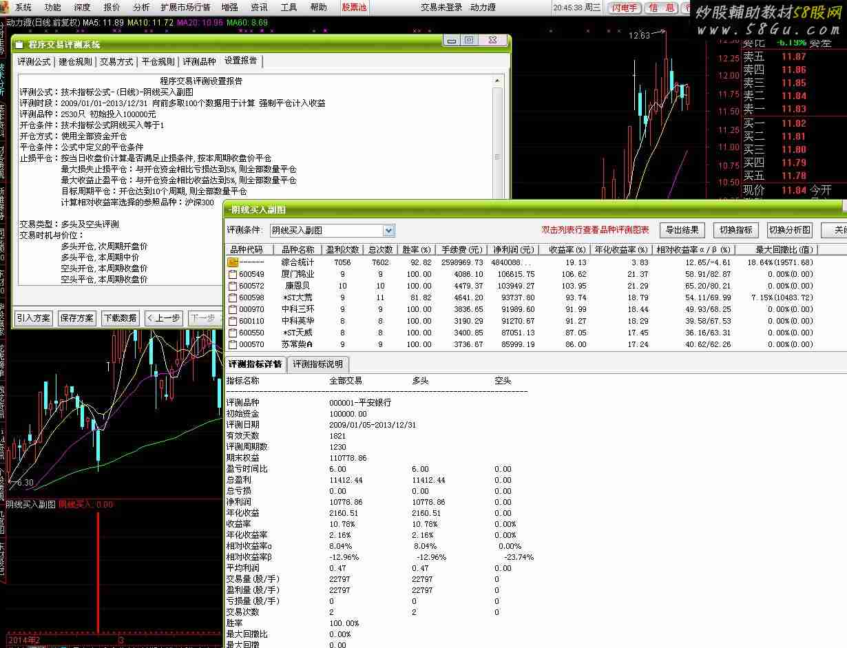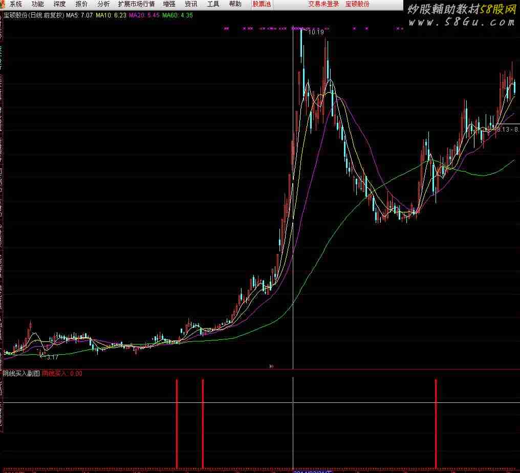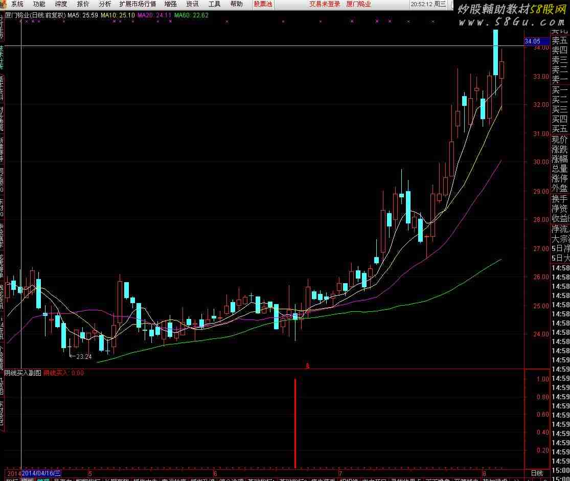 论坛下载一指标,测试阴线买入成功率特高,查看源码发现有函数ZXNH(准未来函数,具体意思不清楚),沙盘推演信号不后补,但大多数次日信号消失,信号次日不消失的以后也基本存在,本人认为该信号短线操作可以进行参考,现改为副图及选股公式,需要的下载给推荐一下,对未来函数不感兴趣的请飘过,不要说三道四,谢谢!{阴线买入副图}M1:=EMA(C,2);M2:=EMA(C,18);TJ1:=IF(CROSS(M2,M1),1,0);A1:=(CLOSE-LLV(LOW,10))/(HHV(HIGH,10)-LLV(LOW,10))*100;TJ2:=(A1/2+22)*1;Q:=EMA(VOL,13);Y:=EMA(AMOUNT,13);S:=(Y/Q)/100;X:=((CLOSE-S)/S)*100;F:=X<0 AND ZXNH;XQ:=F AND A1<TJ2-2;阴线买入:TJ1 AND XQ,STICK,COLORRED,LINETHICK3;{阴线买入选股}M1:=EMA(C,2);M2:=EMA(C,18);TJ1:=IF(CROSS(M2,M1),1,0);A1:=(CLOSE-LLV(LOW,10))/(HHV(HIGH,10)-LLV(LOW,10))*100;TJ2:=(A1/2+22)*1;Q:=EMA(VOL,13);Y:=EMA(AMOUNT,13);S:=(Y/Q)/100;X:=((CLOSE-S)/S)*100;F:=X<0 AND ZXNH;XQ:=F AND A1<TJ2-2;阴线买入:TJ1 AND XQ;