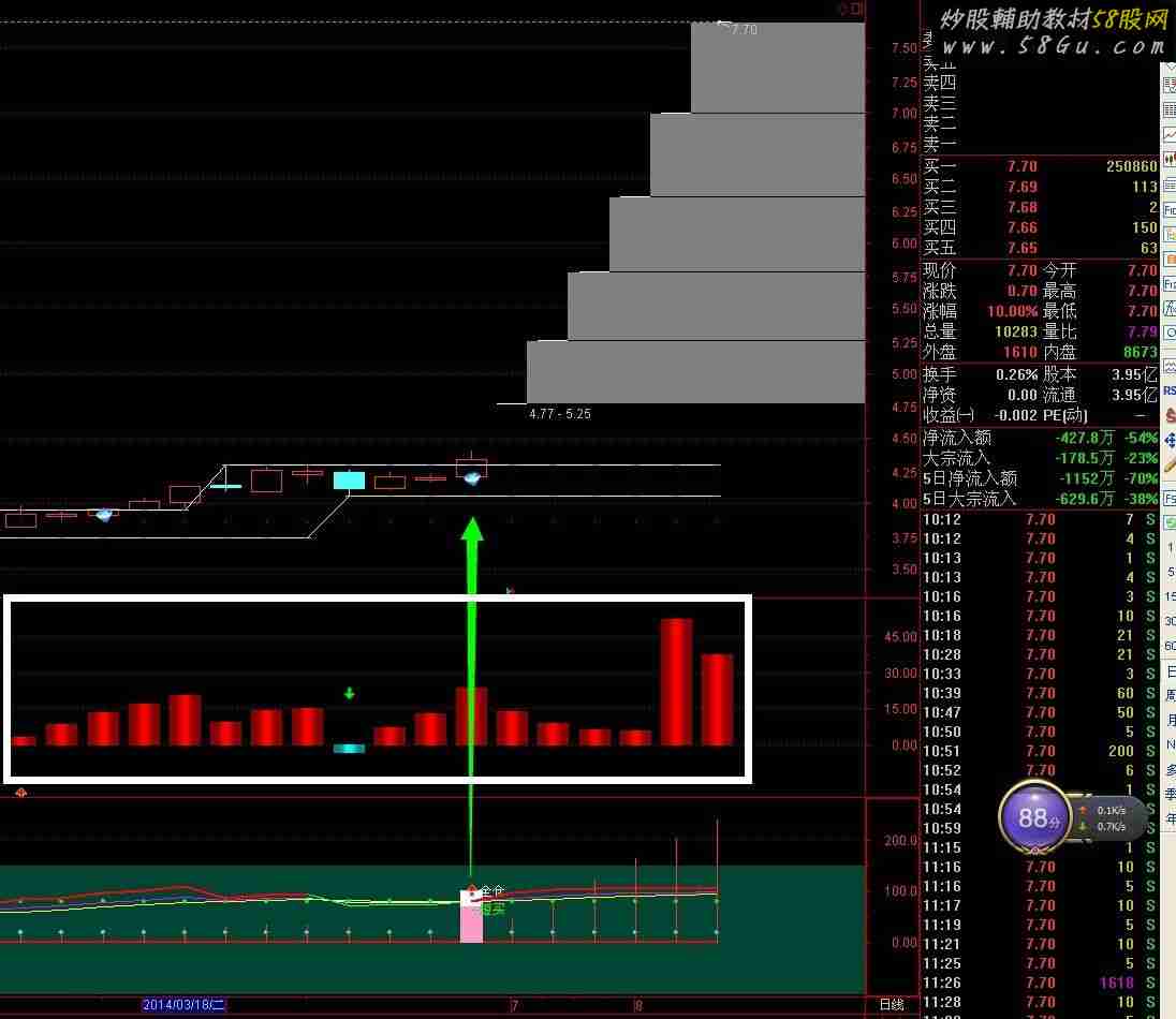 通达信专用!!!!超短~~短线~~一周获利20%以上~(源码)~再次优化!!STICKLINE(C>0,-100,150,100,0),COLOR334400;RSV:=(((CLOSE - LLV(LOW,9)) / (HHV(HIGH,9) - LLV(LOW,9))) * 100);短期底部:=LLV(OPEN,30);K:SMA(RSV,3,1),COLORFFFFFF;D:SMA(K,3,1),COLOR00FFFF;J:3*K-2*D,COLOR33FF33;AA10:=MA(CLOSE,10);AA12:=MA(CLOSE,12);BB10:=((ATAN((AA10 - REF(AA10,1))) * 3.1416) * 10);BB12:=((ATAN((AA12 - REF(AA12,1))) * 3.1416) * 10);MA13:=MA(CLOSE,13);80,POINTDOT,COLOR00FF00,LINETHICK4;VAR2:=(((CLOSE - MA(CLOSE,6)) / MA(CLOSE,6)) * 100);VAR3:=(((CLOSE - MA(CLOSE,12)) / MA(CLOSE,12)) * 100);VAR4:=(((CLOSE - MA(CLOSE,24)) / MA(CLOSE,24)) * 100);VAR5:=(((VAR2 + (2 * VAR3)) + (3 * VAR4)) / 6);VAR6:=MA(VAR5,3);底部1:IF(VAR6 ,20,0),POINTDOT,COLORFFFF00,LINETHICK4;STICKLINE((CROSS(J,K) AND (底部1 >= 20)),100,0,2,0),COLORFFFFFF;DRAWICON((CROSS(J,K) AND (底部1 >= 20)),100,1);DRAWTEXT((CROSS(J,K) AND (底部1 >= 20)),98,'--全仓');DRAWTEXT((VAR6 <= (0 - 15)),80,'买'),COLORFFFFFF;IF((K>D),K,DRAWNULL),COLORFF00FF;IF((J>D),J,DRAWNULL),LINETHICK2,COLOR0000FF;VAR7:=DMA(EMA(CLOSE,12),((SUM(VOL,5) / 3) / CAPITAL));VAR8:=(((CLOSE - VAR7) / VAR7) * 100);VAR9:=((((REF(VAR8,1) < (0 - 40)) AND (VAR8 > REF(VAR8,1))) AND (REF(VAR8,1) < REF(VAR8,2))) AND ((VAR8 - REF(VAR8,1)) > 2.5));VARA:=(((CLOSE - MA(CLOSE,6)) / MA(CLOSE,6)) * 100);VARB:=(((CLOSE - MA(CLOSE,12)) / MA(CLOSE,12)) * 100);VARC:=(((CLOSE - MA(CLOSE,24)) / MA(CLOSE,24)) * 100);VARD:=REF(CLOSE,1);VARE:=((SMA(MAX((CLOSE - VARD),0),5,1) / SMA(ABS((CLOSE - VARD)),5,1)) * 100);VARF:=(((HIGH + LOW) + CLOSE) / 3);VAR10:=((VARF - MA(VARF,14)) / (0.015 * AVEDEV(VARF,14)));VAR11:=(((((MA(AMOUNT,5) / MA(VOL,5)) / 100) - ((MA(AMOUNT,110) / MA(VOL,110)) / 100)) / ((MA(AMOUNT,5) / MA(VOL,5)) / 100)) < (0 - 0.273));VAR12:=(((CLOSE - MA(CLOSE,30)) / MA(CLOSE,30)) < (0 - 0.125));VAR13:=(VAR11 AND VAR12);VAR14:=((((VARA >= (0 - 45)) AND (VARA <= (0 - 10))) AND (VARB <= (0 - 15))) AND (VARC <= (0 - 20)));VAR15:=(COUNT(VAR14,1) >= 1);VAR16:=(VAR13 AND VAR15);VAR17:=1;VAR18:=(CLOSE * VOL);VAR19:=EMA((((((MA(VAR18,4) / MA(VOL,4)) + (MA(VAR18,6) / MA(VOL,6))) + (MA(VAR18,13) / MA(VOL,13))) + (MA(VAR18,24) / MA(VOL,24))) / 4),1);VAR1A:=(1 * VAR19);VAR1B:=(VAR19 * 0.92);VAR1C:=EMA(CLOSE,34);VAR1D:=MA((VAR1C * 1.12),5);VAR1E:=MA((VAR1C * 0.82),5);VAR1F:=(CLOSE < VAR1E);VAR20:=((((((MA(AMOUNT,5) * VAR17) / MA(VOL,5)) / 100) - ((MA(AMOUNT,125) / MA(VOL,125)) / 100)) / ((MA(AMOUNT,5) / MA(VOL,5)) / 100)) < ((0 - 0.4) * VAR17));VAR21:=HHV(HIGH,500);VAR22:=LLV(LOW,500);VAR23:=HHV(HIGH,250);VAR24:=LLV(LOW,250);VAR25:=HHV(HIGH,125);VAR26:=LLV(LOW,125);VAR27:=MA(((((((VAR21 * 0.45) + (VAR23 * 0.5)) + VAR22) + VAR24) + VAR26) / 5),35);VAR28:=MA((((VAR23 * 0.62) + VAR26) / 2),35);VAR29:=MA((((VAR23 * 0.75) + VAR26) / 2),18);VAR2A:=MA((((((VAR23 * 0.93) + (VAR27 * 2)) + (VAR28 * 1.8)) + (VAR29 * 1.5)) / 4),18);VAR2B:=MA(((((VAR21 * 0.95) + (VAR27 * 3)) + (VAR28 * 2)) / 3),35);VAR2C:=VAR27;VAR2D:=VAR28;VAR2E:=VAR29;VAR2F:=VAR2A;VAR30:=VAR2B;VAR31:=((CLOSE - REF(MA(CLOSE,20),11)) < (0 - 2));VAR32:=(INDEXA / 100000000);VAR33:=INDEXADV;VAR34:=INDEXDEC;VAR35:=((VAR18 / (VAR18 + VAR19)) * VAR17);VAR36:=((VAR19 / (VAR18 + VAR19)) * VAR17);VAR37:=EMA(VAR35,10);VAR38:=EMA(VAR36,10);VAR39:=EMA(VAR37,10);VAR3A:=EMA(VAR38,20);VAR3B:=EMA(VAR37,3);VAR3C:=EMA(VAR39,6);VAR3D:=EMA(VAR3A,2);VAR3E:=(VAR3C - VAR3D);VAR3F:=(((VAR3C - REF(VAR3C,1)) > 0) AND ((REF(VAR3C,1) - REF(VAR3C,2)) < 0));VAR40:=IF((CROSS(VAR3B,VAR3C) AND (VAR3C <= 20)),30,0);VAR41:=VAR40;VAR42:=(SMA(((AMOUNT / VOL) / 100),13,1) * 1.15);VAR43:=(SMA(((AMOUNT / VOL) / 100),13,1) * 0.85);VAR44:=(CLOSE - REF(MA(CLOSE,20),11));VAR45:=(((((((((((((CLOSE < VAR1E) AND VAR20) AND (CLOSE < VAR43)) OR (((CLOSE < VAR1E) AND VAR31) AND VAR20)) OR ((CLOSE < VAR1E) AND (CLOSE < VAR43))) OR (((CLOSE < VAR1E) AND VAR20) AND (CLOSE < VAR43))) OR (VAR20 AND (CLOSE < VAR2C))) OR ((VAR20 AND VAR31) AND (VAR44 < (0 - 1.5)))) OR (VAR20 AND (CLOSE < VAR1E))) OR (VAR20 AND (VAR44 < (0 - 1.5)))) OR (VAR31 AND (CLOSE < VAR43))) OR ((CLOSE < VAR2C) AND (VAR44 < (0 - 1.5)))) OR ((CLOSE < VAR1E) AND VAR31));VAR46:=(((CLOSE - MA(CLOSE,6)) / MA(CLOSE,6)) * 100);VAR47:=(((CLOSE - MA(CLOSE,12)) / MA(CLOSE,12)) * 100);VAR48:=(((CLOSE - MA(CLOSE,24)) / MA(CLOSE,24)) * 100);VAR49:=REF(CLOSE,1);VAR4A:=((SMA(MAX((CLOSE - VAR49),0),5,1) / SMA(ABS((CLOSE - VAR49)),5,1)) * 100);VAR4B:=(((HIGH + LOW) + CLOSE) / 3);VAR4C:=((VAR4B - MA(VAR4B,14)) / (0.015 * AVEDEV(VAR4B,14)));VAR4D:=(((((MA(AMOUNT,5) / MA(VOL,5)) / 100) - ((MA(AMOUNT,110) / MA(VOL,110)) / 100)) / ((MA(AMOUNT,5) / MA(VOL,5)) / 100)) < (0 - 0.273));VAR4E:=(((CLOSE - MA(CLOSE,30)) / MA(CLOSE,30)) < (0 - 0.125));VAR4F:=(VAR11 AND VAR12);VAR50:=((((VAR2 >= (0 - 45)) AND (VAR2 <= (0 - 7))) AND (VAR3 <= (0 - 11))) AND (VAR4 <= (0 - 14)));VAR51:=(COUNT(VAR50,1) >= 1);VAR52:=(VAR4F AND VAR51);VAR53:=(((((VAR20 AND (CLOSE < VAR1E)) AND VAR31) AND (CLOSE < VAR2C)) AND VAR45) AND VAR52);VAR54:=(((CLOSE - MA(CLOSE,6)) / MA(CLOSE,6)) * 100);VAR55:=(((CLOSE - MA(CLOSE,12)) / MA(CLOSE,12)) * 100);VAR56:=(((CLOSE - MA(CLOSE,24)) / MA(CLOSE,24)) * 100);VAR57:=REF(CLOSE,1);VAR58:=((SMA(MAX((CLOSE - VAR57),0),5,1) / SMA(ABS((CLOSE - VAR57)),5,1)) * 100);VAR59:=(((HIGH + LOW) + CLOSE) / 3);VAR5A:=((VAR59 - MA(VAR59,14)) / (0.015 * AVEDEV(VAR59,14)));VAR5B:=((((((VAR54 >= (0 - 15.8)) AND (VAR54 <= (0 - 12.2))) AND (VAR55 <= (0 - 20.8))) AND (VAR56 <= (0 - 27.5))) AND (VAR58 <= 11.7)) AND (VAR5A <= (0 - 145)));VAR5C:=9.999999884842+026;VAR5D:=(COST(10) * 0);VAR5E:=((((MA(AMOUNT,5) / MA(VOL,5)) / 100) - ((MA(AMOUNT,125) / MA(VOL,125)) / 100)) / ((MA(AMOUNT,5) / MA(VOL,5)) / 100));VAR5F:=MA((((LLV(LOW,45) - CLOSE) / (HHV(HIGH,45) - LLV(LOW,45))) * 100),5);VAR60:=((CROSS((0 - 5),VAR5F) AND (VAR5E < (0 - 0.4))) AND (((CLOSE - MA(CLOSE,30)) / MA(CLOSE,30)) < (0 - 0.19)));VAR61:=MA(CLOSE,3);VAR62:=(REF(CLOSE,2) * 0.865);VAR63:=(REF(CLOSE,13) * 0.772);VAR64:=MIN(VAR62,VAR63);VAR65:=((100 * VOL) / CAPITAL);VAR66:=MA(CLOSE,13);VAR67:=IF(((((CLO