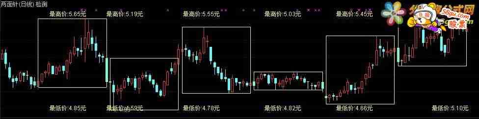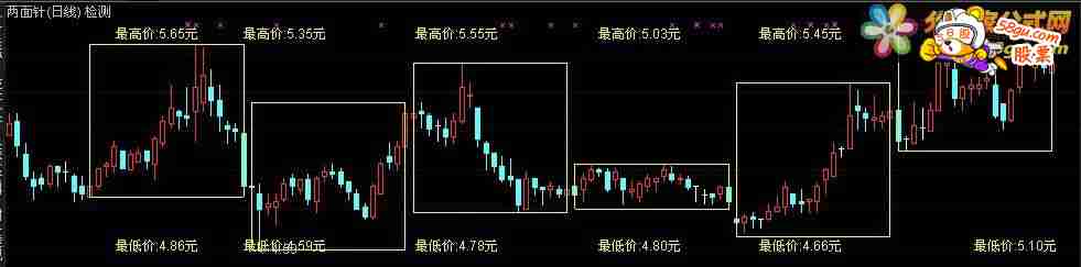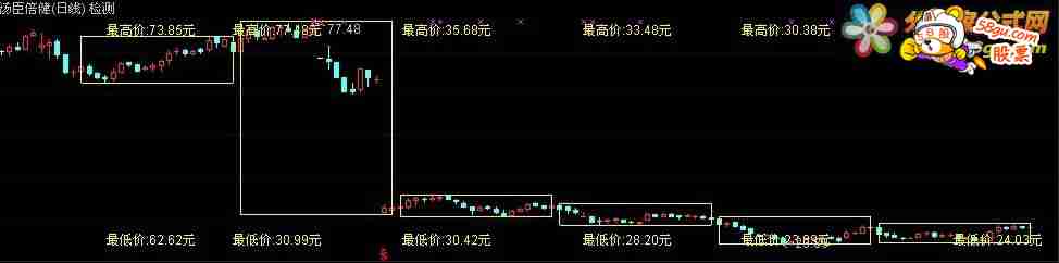 一个月20天左右交易日,每20天的最高价做箱顶 最低价做箱底。半年120个交易日共6个箱体。高低不同,就当半年看6跟K线吧。其中震旦 盘整 下跌 启动在这6跟箱体中有何规律?自己去找。没有一点技术含量,全凭自己的感官。你发现了什么?HH:=FINDHIGH(H,0,20,1); LL:=FINDLOW(L,0,20,1); HH1:=FINDHIGH(H,20,20,1); LL1:=FINDLOW(L,20,20,1); HH2:=FINDHIGH(H,40,20,1); LL2:=FINDLOW(L,40,20,1); HH3:=FINDHIGH(H,60,20,1); LL3:=FINDLOW(L,60,20,1); HH4:=FINDHIGH(H,80,20,1); LL4:=FINDLOW(L,80,20,1); HH5:=FINDHIGH(H,100,20,1); LL5:=FINDLOW(L,100,20,1); STICKLINE(CURRBARSCOUNT<20 AND CURRBARSCOUNT>1 ,CONST(HH),CONST(HH),8,0)COLORYELLOW; STICKLINE(CURRBARSCOUNT<20 AND CURRBARSCOUNT>1 ,CONST(LL),CONST(LL),8,0)COLORYELLOW; STICKLINE(CURRBARSCOUNT=20 OR CURRBARSCOUNT=1 ,CONST(HH),CONST(LL),0,0)COLORYELLOW; STICKLINE(CURRBARSCOUNT<40 AND CURRBARSCOUNT>21 ,CONST(HH1),CONST(HH1),8,0)COLORYELLOW; STICKLINE(CURRBARSCOUNT<40 AND CURRBARSCOUNT>21,CONST(LL1),CONST(LL1),8,0)COLORYELLOW; STICKLINE(CURRBARSCOUNT=40 OR CURRBARSCOUNT=21 ,CONST(HH1),CONST(LL1),0,0)COLORYELLOW; STICKLINE(CURRBARSCOUNT<60 AND CURRBARSCOUNT>41,CONST(HH2),CONST(HH2),8,0)COLORYELLOW; STICKLINE(CURRBARSCOUNT<60 AND CURRBARSCOUNT>41,CONST(LL2),CONST(LL2),8,0)COLORYELLOW; STICKLINE(CURRBARSCOUNT=60 OR CURRBARSCOUNT=41,CONST(HH2),CONST(LL2),0,0)COLORYELLOW; STICKLINE(CURRBARSCOUNT<80 AND CURRBARSCOUNT>61,CONST(HH3),CONST(HH3),8,0)COLORYELLOW; STICKLINE(CURRBARSCOUNT<80 AND CURRBARSCOUNT>61,CONST(LL3),CONST(LL3),8,0)COLORYELLOW; STICKLINE(CURRBARSCOUNT=80 OR CURRBARSCOUNT=61,CONST(HH3),CONST(LL3),0,0)COLORYELLOW; STICKLINE(CURRBARSCOUNT<100 AND CURRBARSCOUNT>81,CONST(HH4),CONST(HH4),8,0)COLORYELLOW; STICKLINE(CURRBARSCOUNT<100 AND CURRBARSCOUNT>81,CONST(LL4),CONST(LL4),8,0)COLORYELLOW; STICKLINE(CURRBARSCOUNT=100 OR CURRBARSCOUNT=81,CONST(HH4),CONST(LL4),0,0)COLORYELLOW; STICKLINE(CURRBARSCOUNT<120 AND CURRBARSCOUNT>101,CONST(HH5),CONST(HH5),8,0)COLORYELLOW; STICKLINE(CURRBARSCOUNT<120 AND CURRBARSCOUNT>101,CONST(LL5),CONST(LL5),8,0)COLORYELLOW; STICKLINE(CURRBARSCOUNT=120 OR CURRBARSCOUNT=101,CONST(HH5),CONST(LL5),0,0)COLORYELLOW; DRAWTEXT_FIX(CURRBARSCOUNT=20,0.9,0.005,0,STRCAT(STRCAT('最高价:',VAR2STR(HH,2)),'元'))COLORYELLOW; DRAWTEXT_FIX(CURRBARSCOUNT=20,0.9,1.9,0,STRCAT(STRCAT('最低价:',VAR2STR(LL,2)),'元'))COLORYELLOW; DRAWTEXT_FIX(CURRBARSCOUNT=40,0.7,0.005,0,STRCAT(STRCAT('最高价:',VAR2STR(HH1,2)),'元'))COLORYELLOW; DRAWTEXT_FIX(CURRBARSCOUNT=40,0.7,1.9,0,STRCAT(STRCAT('最低价:',VAR2STR(LL1,2)),'元'))COLORYELLOW; DRAWTEXT_FIX(CURRBARSCOUNT=60,0.55,0.005,0,STRCAT(STRCAT('最高价:',VAR2STR(HH2,2)),'元'))COLORYELLOW; DRAWTEXT_FIX(CURRBARSCOUNT=60,0.55,1.9,0,STRCAT(STRCAT('最低价:',VAR2STR(LL2,2)),'元'))COLORYELLOW; DRAWTEXT_FIX(CURRBARSCOUNT=80,0.38,0.005,0,STRCAT(STRCAT('最高价:',VAR2STR(HH3,2)),'元'))COLORYELLOW; DRAWTEXT_FIX(CURRBARSCOUNT=80,0.38,1.9,0,STRCAT(STRCAT('最低价:',VAR2STR(LL3,2)),'元'))COLORYELLOW; DRAWTEXT_FIX(CURRBARSCOUNT=100,0.22,0.005,0,STRCAT(STRCAT('最高价:',VAR2STR(HH4,2)),'元'))COLORYELLOW; DRAWTEXT_FIX(CURRBARSCOUNT=100,0.22,1.9,0,STRCAT(STRCAT('最低价:',VAR2STR(LL4,2)),'元'))COLORYELLOW; DRAWTEXT_FIX(CURRBARSCOUNT=120,0.101,0.005,0,STRCAT(STRCAT('最高价:',VAR2STR(HH5,2)),'元'))COLORYELLOW; DRAWTEXT_FIX(CURRBARSCOUNT=120,0.101,1.9,0,STRCAT(STRCAT('最低价:',VAR2STR(LL5,2)),'元'))COLORYELLOW;