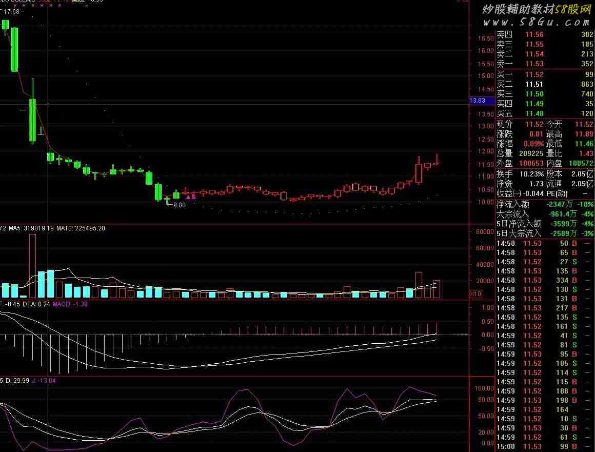 首先声明 这个指标是 别的朋友两年前给我的 感觉还不错 分享给大家 希望对大家有帮助 个别没有修养的请绕行 只为有缘人 别人都抓牛股 我给大家抓个熊股看看 600371 一个多月也有百分之15%的利润买线:EMA(C,2),COLORRED,LINETHICK1; 卖线:EMA(SLOPE(C,21)*21+C,42),POINTDOT,COLORYELLOW; BUY:=CROSS(买线,卖线); SEL:=CROSS(卖线,买线); DRAWTEXT(BUY,LOW-0.1,'▲B '),COLORF00FF0,LINETHICK5; DRAWTEXT(SEL,HIGH+0.1,'▼S'),COLORWHITE,LINETHICK5; STICKLINE(买线>=卖线,LOW,HIGH,0.1,1),COLORRED; STICKLINE(买线>=卖线,CLOSE,OPEN,2,1),COLORRED; STICKLINE(买线<卖线,CLOSE,OPEN,2,0),COLORGREEN; STICKLINE(买线<卖线,LOW,HIGH,0.1,1),COLORGREEN; STICKLINE(CROSS(买线,卖线) OR CROSS(卖线,买线),OPEN,CLOSE,2,0),COLORRED; |