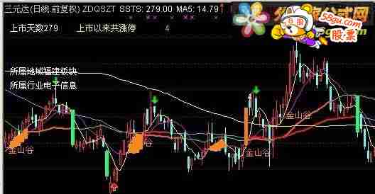 SSTS:CONST(BARSCOUNT(CLOSE)),NODRAW; MA5:MA(CLOSE,5); MA10:MA(CLOSE,10); MA20:=MA(CLOSE,20),LINETHICK1; MA30:MA(CLOSE,30); M30:IF(MA5>MA20,MA30,DRAWNULL),COLOR1157FF,LINETHICK2; MA60:MA(CLOSE,60),COLORFF9D66,LINETHICK1; M60:IF(MA60<C,MA60,DRAWNULL),COLOR1112FF,LINETHICK2; MA120:MA(CLOSE,120); MA250:=MA(CLOSE,250); STICKLINE(MA5>MA10 AND MA10<MA20,MA5,MA10,3.2,0),COLOR1788FF; DRAWICON(FILTER((ZIG(3,5)>REF(ZIG(3,5),1)),25) AND (REF(ZIG(3,5),1)<=REF(ZIG(3,5),2)) AND (REF(ZIG(3,5),2)<=REF(ZIG(3,5),3)),LOW*0.98,1) ; DRAWICON(FILTER((ZIG(3,5)<REF(ZIG(3,5),1)),25) AND (REF(ZIG(3,5),1)>=REF(ZIG(3,5),2)) AND (REF(ZIG(3,5),2)>=REF(ZIG(3,5),3)),HIGH*1.01,2); DRAWTEXT(COUNT(CROSS(MA5,MA10),21)>1 AND CROSS(MA5,MA10),L,'金山谷'),COLOR1788FF; DRAWTEXT_FIX(C>0,0.01,0.31,0,'所属行业:'); DRAWTEXT_FIX(C>0,0.01,0.24,0,'所属地域:'); DRAWTEXT_FIX(C>0,0.07,0.31,0,HYBLOCK); DRAWTEXT_FIX(C>0,0.07,0.24,0,DYBLOCK); DRAWTEXT_FIX(C>0,0.01,0.03,0,'上市天数:'); DRAWNUMBER_FIX(C>0,0.07,0.03,0,SSTS); ZT:=(C+H)*0.5/REF(C,1)>1.09; DT:=(C+L)*0.5/REF(C,1)<0.92; STICKLINE(ZT,O,C,2.3,0),COLOR1279FA; STICKLINE(DT,O,C,2.3,0),COLOR79FA22; NUMBER:=COUNT(ZT,SSTS); NDT:=COUNT(DT,SSTS); DRAWNUMBER(ZT,HIGH*1.04,NUMBER),COLORWHITE; DRAWNUMBER(DT,HIGH*1.04,NDT),COLOR11BB22; DRAWNUMBER_FIX(CURRBARSCOUNT=1,0.29,0.03,0,NUMBER),COLOR2288DD; DRAWTEXT_FIX(CURRBARSCOUNT=1,0.13,0.03,0,'上市以来共涨停'),COLORYELLOW; DRAWNUMBER_FIX(CURRBARSCOUNT=1,0.29,0.088,0,NDT),COLOR22FF33; DRAWTEXT_FIX(CURRBARSCOUNT=1,0.13,0.088,0,'上市以来共跌停'),COLOR22BB33; |