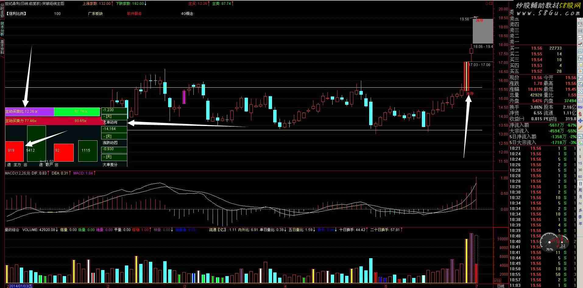ZT:=C>REF(C,1)*1.090 AND C<REF(C,1)*1.105;DT:=C<REF(C,1)*0.901 AND C>REF(C,1)*0.898;STICKLINE(ZT,C,O,4,0),COLORRED;STICKLINE(DT,C,O,4,0),COLORBLUE;DRAWTEXT(ZT,L-0.1,'涨停'),COLORRED;DRAWTEXT(DT,H+0.3,'跌停'),COLORBLUE;STICKLINE(C/REF(C,1)>1.095,C,O,2,0),COLORYELLOW;DRAWTEXT_FIX(C>0,0.17,0.0,0,DYBLOCK),COLORYELLOW,LINETHICK2;DRAWTEXT_FIX(C>0,0.25,0.0,0,HYBLOCK),COLORRED,LINETHICK2;DRAWTEXT_FIX(C>0,0.36,0.0,0,GNBLOCK)COLORWHITE;DRAWTEXT_FIX(1,0,0.0,0,'【莸利比例】'),COLORWHITE;DRAWNUMBER_FIX(1,0.10,0.0,0,CONST(WINNER(C )*100)),COLORYELLOW;DRAWTEXT_FIX(1,0.0,0.06,0,EXTERNSTR(0,2));上涨家数:INDEXADV,COLOR0080FF,NODRAW;下跌家数:INDEXDEC,COLORGREEN,NODRAW;DRAWKLINE(H,O,L,C);MA5:=MA(CLOSE,5),COLORWHITE;MA10:=MA(CLOSE,10),COLORYELLOW;MA30:=MA(CLOSE,30),COLORMAGENTA;MA60:=MA(CLOSE,60),COLORGREEN;MA120:=MA(CLOSE,120),COLORLIMAGENTA;MA240:=MA(CLOSE,240),COLORBLUE,NODRAW; VOL5:=MA(VOL,5),COLORWHITE;VOL10:=MA(VOL,10),COLORYELLOW;VOL40:=MA(VOL,40),COLORFF00FF ;量托:=VOL5>=VOL40 AND CROSS(VOL10,VOL40) AND REF(VOL10,1)<REF(VOL40,1);DRAWTEXT(量托,L-0.012,''),COLORWHITE;AA1:=BARSLAST(MA60>MA30 AND (MA30=MA10 OR MA30>MA10));BB1:=REF(COUNT(C<MA60,AA1)=AA1,1);CC1:=CROSS(C,MA60) AND VOL>MA(VOL,5) AND (C-REF(C,1))/REF(C,1)*100>3;芙蓉出水:=BB1 AND CC1,COLOR00FF00;DRAWTEXT(芙蓉出水,H+0.3,''),COLORFF00FF;STICKLINE(芙蓉出水,H,L,1,1),COLORFF00FF;STICKLINE(芙蓉出水,O,C,3,1),LINETHICK2,COLORFF00FF;MA1:=MA(CLOSE,5);MA2:=MA(CLOSE,10);MA3:=MA(CLOSE,20);ZJ:=AMOUNT/10000;TM:=V-MA(V,10);一穿三:=MA1>O AND MA2>O AND MA3>O AND MA1<C AND MA2<C AND MA3<C AND CLOSE>OPEN ;DRAWTEXT(一穿三,L-0.012,''),COLORFF00FF;STICKLINE(一穿三,OPEN,CLOSE,1,0),COLORFF00FF;三日不破:=MIN(MIN(L,REF(L,1)),REF(L,2))>=REF(L,3);三日量缩:=(MAX(MAX(V,REF(V,1)),REF(V,2))<REF(V,3));三日价涨A:=C>=REF(C,1);三日价涨B:=C<REF(C,1);三日价涨C:=MIN(MIN(C,REF(C,1)),REF(C,2))>=REF(L,3);TIM:=IF(DATE<1140214,1,0);缩倍柱:=(VOL*1.95<=REF(VOL,1))*TIM;百日低量:=(VOL=LLV(VOL,100))*TIM;倍量柱:=C>REF(C,1)*1.04 AND (VOL>=1.9*REF(VOL,1))*TIM;四日前倍量柱:=(REF(VOL,3)>1.9*REF(VOL,4))*TIM;四日前高量柱:=(REF(VOL,3)>=REF(VOL,4) AND REF(VOL,3)<1.9*REF(VOL,4) AND 三日量缩)*TIM;前三引用不成立:=COUNT(REF(四日前倍量柱,1) AND (REF(三日不破,1) OR REF(三日价涨C,1)),3)=0 AND COUNT(REF(四日前高量柱,1) AND (REF(三日不破,1) OR REF(三日价涨C,1)),3)=0;倍量黄金柱:=四日前倍量柱 AND 三日量缩 AND 三日不破 AND 三日价涨A AND 前三引用不成立;高量黄金柱:=四日前高量柱 AND 三日量缩 AND 三日不破 AND 三日价涨A AND 前三引用不成立;黄金柱:=倍量黄金柱 OR 高量黄金柱;次倍量黄金柱:=NOT(黄金柱) AND 四日前倍量柱 AND 三日量缩 AND 三日不破 AND 三日价涨B AND 前三引用不成立;次高量黄金柱:=NOT(黄金柱) AND 四日前高量柱 AND 三日量缩 AND 三日不破 AND 三日价涨B AND 前三引用不成立;次黄金柱:=次倍量黄金柱 OR 次高量黄金柱;准倍量黄金柱:=NOT(黄金柱 OR 次黄金柱) AND 四日前倍量柱 AND ((三日量缩 AND 三日价涨C) OR (COUNT(倍量柱,3)>=1 AND 三日不破)) AND 前三引用不成立;准高量黄金柱:=NOT(黄金柱 OR 次黄金柱) AND 四日前高量柱 AND (三日量缩 AND 三日价涨C) AND 前三引用不成立;准黄金柱:=准倍量黄金柱 OR 准高量黄金柱;倍量将军柱:=NOT(黄金柱 OR 次黄金柱 OR 准黄金柱) AND 四日前倍量柱 AND 三日不破 AND 三日价涨A AND 前三引用不成立;高量将军柱:=NOT(黄金柱 OR 次黄金柱 OR 准黄金柱) AND 四日前高量柱 AND 三日不破 AND 三日价涨A AND 前三引用不成立;将军柱:=倍量将军柱 OR 高量将军柱;次倍量将军柱:=NOT(黄金柱 OR 次黄金柱 OR 准黄金柱 OR 将军柱) AND 四日前倍量柱 AND 三日不破 AND 三日价涨B AND 前三引用不成立;次高量将军柱:=NOT(黄金柱 OR 次黄金柱 OR 准黄金柱 OR 将军柱) AND 四日前高量柱 AND 三日不破 AND 三日价涨B AND 前三引用不成立;次将军柱:=次倍量将军柱 OR 次高量将军柱;准倍量将军柱:=NOT(黄金柱 OR 次黄金柱 OR 准黄金柱 OR 将军柱 OR 次将军柱) AND 四日前倍量柱 AND 三日价涨C AND 前三引用不成立;准高量将军柱:=NOT(黄金柱 OR 次黄金柱 OR 准黄金柱 OR 将军柱 OR 次将军柱) AND 四日前高量柱 AND 三日价涨C AND 前三引用不成立;准将军柱:=准倍量将军柱 OR 准高量将军柱;BACKSET100:=BACKSET(黄金柱 OR 次黄金柱 OR 准黄金柱 OR 将军柱 OR 次将军柱 OR 准将军柱,4);FILTER100:=FILTER(BACKSET100,3),NODRAW;BACKSET101:=BACKSET(黄金柱,4);FILTER101:=FILTER(BACKSET101,3);BACKSET102:=BACKSET(次黄金柱,4);FILTER102:=FILTER(BACKSET102,3);BACKSET103:=BACKSET(准黄金柱,4);FILTER103:=FILTER(BACKSET103,3);BACKSET104:=BACKSET(将军柱,4);FILTER104:=FILTER(BACKSET104,3);BACKSET105:=BACKSET(次将军柱,4);FILTER105:=FILTER(BACKSET105,3);BACKSET106:=BACKSET(准将军柱,4);FILTER106:=FILTER(BACKSET106,3);黄金线下影线:=REF(FILTER100,3)=1 AND MIN(MIN(L,REF(L,1)),REF(L,2))<=REF(L,3);黄金线实体下端:=REF(FILTER100,3)=1 AND MIN(MIN(L,REF(L,1)),REF(L,2))<=MIN(REF(C,3),REF(O,3)) AND MIN(MIN(L,REF(L,1)),REF(L,2))>REF(L,3),LINETHICK0;黄金线上影线:=REF(FILTER100,3)=1 AND MIN(MIN(L,REF(L,1)),REF(L,2))>=REF(H,3);黄金线实体上端:=REF(FILTER100,3)=1 AND MIN(MIN(L,REF(L,1)),REF(L,2))>=MAX(REF(C,3),REF(O,3)) AND REF(FILTER100,3)=1 AND MIN(MIN(L,REF(L,1)),REF(L,2))<REF(H,3);黄金线实体中间:=REF(FILTER100,3)=1 AND MIN(MIN(L,REF(L,1)),REF(L,2))<MAX(REF(C,3),REF(O,3)) AND REF(FILTER100,3)=1 AND MIN(MIN(L,REF(L,1)),REF(L,2))>MIN(REF(C,3),REF(O,3));黄金线实体中间1:=REF(FILTER100,3)=1 AND MIN(MIN(L,REF(L,1)),REF(L,2))<MAX(REF(C,3),REF(O,3)) AND REF(FILTER100,3)=1 AND MIN(MIN(L,REF(L,1)),REF(L,2))>MIN(REF(C,3),REF(O,3)) AND REF(L,2)=MIN(MIN(L,REF(L,1)),REF(L,2));黄金线实体中间2:=REF(FILTER100,3)=1 AND MIN(MIN(L,REF(L,1)),
