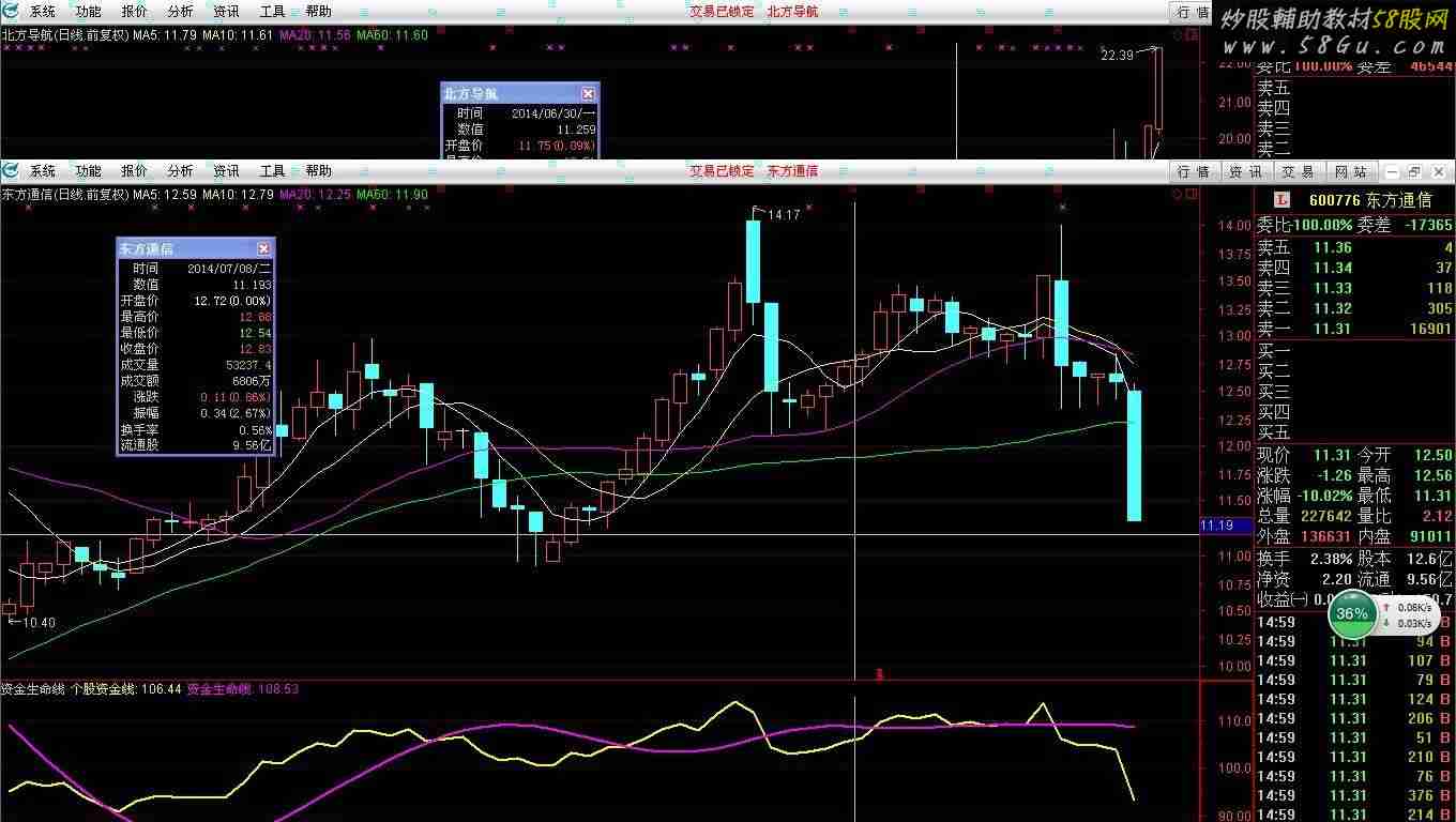 直接上图,黄线上传紫线。资金介入,跟进。高位时,黄线下穿紫线。赶紧跑