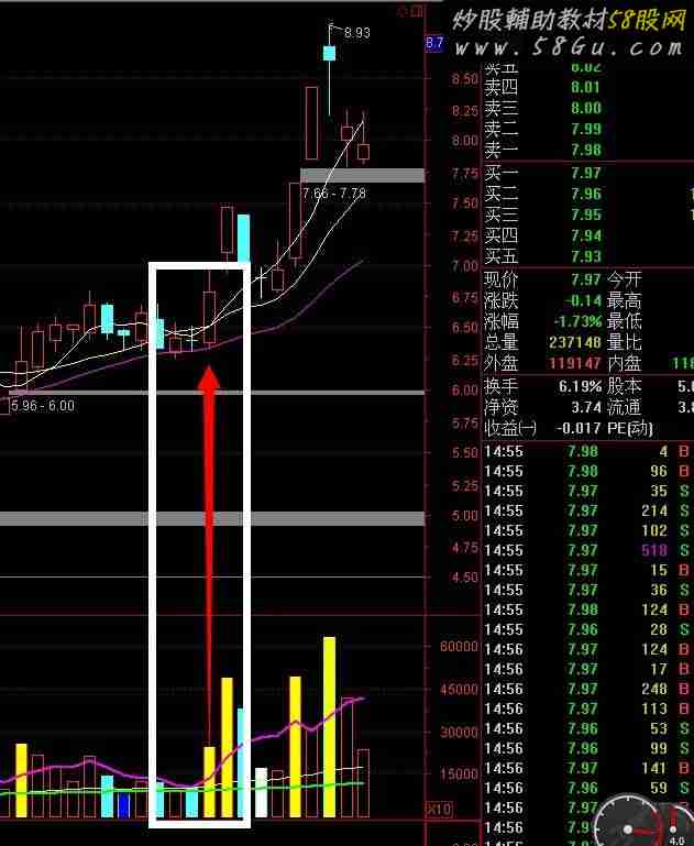 自用多年的成交量指标~~2014年希望大家一起获利!!!源码VVOL:IF(CURRBARSCOUNT=1 AND PERIOD=5,VOL*240/FROMOPEN,DRAWNULL),NODRAW;STICKLINE(CURRBARSCOUNT=1 AND PERIOD=5,VVOL,0,-1,-1),COLOR00C0C0;VOLUME:VOL,VOLSTICK;AA:=VOL>REF(V,1)*1.9;AA1:=VOL<REF(LLV(VOL,13),1);AA2:=VOL<REF(LLV(VOL,50),1);AA3:=VOL<REF(LLV(VOL,100),1);AA4:=VOL<=REF(V,1)*0.5;STICKLINE(AA,0,V,2,0),COLORYELLOW;STICKLINE(AA1,0,V,2,0),COLORBLUE;STICKLINE(AA2,0,V,2,0),COLORMAGENTA;STICKLINE(AA3,0,V,2,0),COLORRED;STICKLINE(AA4,0,V,2,0),COLORWHITE;MV5:MA(V,5),COLORMAGENTA,LINETHICK2;MV40:MA(V,40),COLORYELLOW;MV135:MA(V,135),LINETHICK2; DRAWICON(CROSS(MV5,MV135),MV5,1); {5日上穿135日做记号};