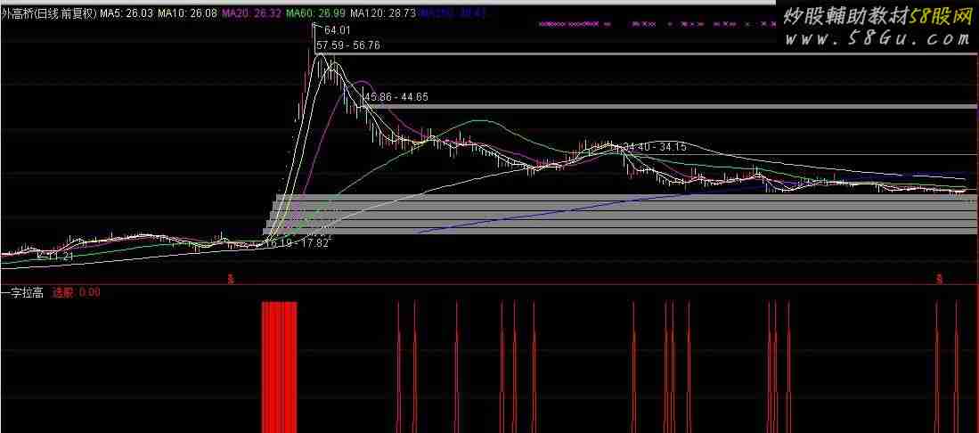 本指标的目的,是提供本人对一字板的思考,不是一种绝对的买卖指标。可以参考,不可以盲目。 一字板,让人喜欢让人愁。喜欢者,是有先知先觉的提前介入者,拿着放心省心。发愁者,是看好却无法介入之人。 一字板,一个是突发利好,主力抢筹所致。这种一字板,主力抢不到多少筹码,主要是在一字板打开后才能抢到。另一个是主力在底部吸筹充分,借助巨大的利好一字封板,然后再高位轻松震荡派发。一般而言,你是看不到主力在顶部阶段用一字板来拉股价的,这么拉,要出货,不是跟自己过不去么?有时候有个别的一字板,其实都是诱多手法而已。 我们要做的一字板,主要就是考虑主力抢筹这一类型。 本人一贯不主张在一字板打开后就立即去参与,那个时候,我们就当观众,看着主力自我表演,并不断分析,思考有无参考的价值,在什么情况下去参与。 我个人的看法,多数情况下,如果主力拉出三五个一字板,这种一般是可以再后面找机会参与的。如果拉上10来个一字板,那后面就要小心了,几乎可以肯定的说,这种情况都没有参与的价值。下面的图中,两种例子都有,自己可以懂脑筋去识别。或许你认为是指标问题吧,那我也无话可说。 具体的东西我也不想多说,还是让图来说话吧,更多的,还是朋友们自己去体悟。秉承本人一贯的不忽悠的态度,截图都是截大图,增加K线数量,让朋友们自己去判断是否可以下载,不白消费你的共享币。 指标不是万能的,没有指标是万万不能的。指标的辅助作用,是我们的眼睛和大脑在某些情况下所达不到的。指标受设置条件的限制,并不是说,只有出现信号的地方才是参与的地方,也并不是说,出现信号的地方,就是最理想的买入地方。所以,还需要你的大脑,还需要你的止损。图中的红柱,便是一字板的存在,后面的才是买点区域信号。再次说明,这里提供的是一个思路,不是绝对的买卖信号,下载前请看清,否则不如你的意让你来骂人,暴露你的素质。 YZZT:=IF(REF(C,1)*1.1-C<0.01 ,1,0) AND O=C;CZ:=COUNT(EVERY(YZZT,2),168)>0;STICKLINE((EVERY(YZZT,2)),0,1,1,0),COLORRED;VARA:=MA(SMA(ABS(LOW-REF(LOW,1)),3,1)/SMA(MAX(LOW-REF(LOW,1),0),3,1)*100/10,3);YDMC:=MA(IF(LOW<=LLV(LOW,30),(VARA+HHV(VARA,30))/2,0),3);机会:=REF(YDMC,2)<REF(YDMC,1) AND REF(YDMC,1)>=YDMC;选股:EXIST(CZ,158) AND 机会,COLORRED;