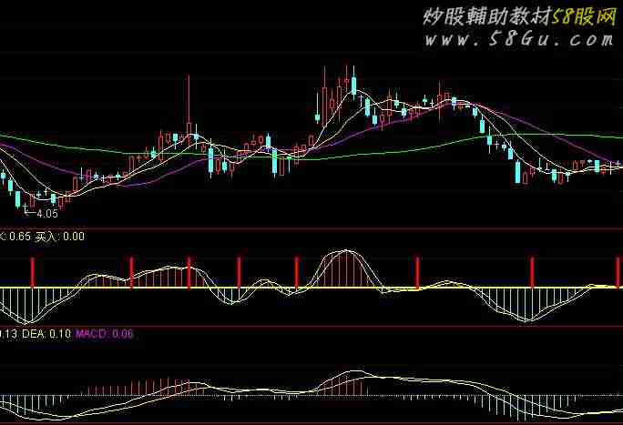 本公式与macd公式相似稍加其他源码而成,其中kd交叉提前于macd,捕捉每一大小波段,未进行成功测试,熟话说撑死胆大的,饿死胆小的,敢不敢用自己把握.所以取名快进快出快进快出 VAR1:=(2*CLOSE+HIGH+LOW)/4; VAR2:=EXPMA(EXPMA(EXPMA(VAR1,4),4),4); J: (VAR2-REF(VAR2,1))/REF(VAR2,1)*100, COLORSTICK; D: MA(J,3); K: MA(J,1); V1:=EMA(CLOSE,60)-EMA(CLOSE,300); V2:=EMA(V1,300); V3:=(CLOSE-LLV(LOW,8))/(HHV(HIGH,8)-LLV(LOW,8))*100; V6:=CLOSE/REF(CLOSE,3)>=1.1; 买入:IF((V6 AND COUNT(V6,3)=1),2,0),COLORYELLOW,LINETHICK2; STICKLINE(C>(REF(C,1))AND(CROSS(K,D)),1.0,买入,1,0),COLORRED;