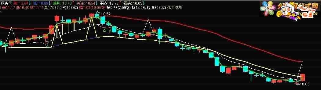 高:SMA(HIGH,21,2)*1.05,COLOR0000FF,LINETHICK2; 低:SMA(LOW,21,2)*0.95,COLORFF6600; 支撑:=SMA(LOW,5,1); 趋势:SMA(CLOSE,2,1),COLOR00FF00,LINETHICK2; QSXS:=COUNT(高>REF(高,1),3)=3; GZ:=CROSS(支撑,L) OR CROSS(支撑,C); 关注:IF(GZ AND QSXS,支撑*0.98,支撑),COLOR0088FF; 买点:IF(CROSS(趋势,支撑),高*1.01,支撑),COLORFFFFFF; 领头:IF(CROSS(趋势,高),高*1.01,低),COLOR00FFFF,LINETHICK2; DRAWTEXT(关注=支撑*0.98,L*0.98,'△'),COLOR00FF00; STICKLINE(趋势>高,支撑,高,0.1,1),COLOR00FFFF;