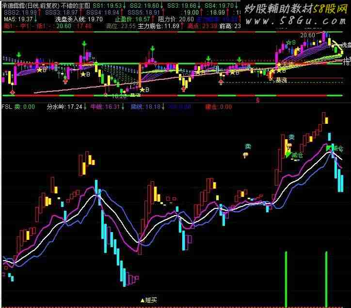 看到有人发程序化交易模型 个人也发一个。。一个足矣。。指标简单明了。。说得多了大家可能会觉得多余!!上图上指标LC:=REF(CLOSE,1);RSI1:=SMA(MAX(CLOSE-LC,0),6,1)/SMA(ABS(CLOSE-LC),6,1)*100;卖点:=CROSS(85,RSI1)*30,COLOR00FF00,LINETHICK2;卖:IF(卖点,6.5,0),STICK,COLORGREEN,LINETHICK4;洗钱A:=(CLOSE-LLV(LOW,32))/(HHV(HIGH,32)-LLV(LOW,32))*1.2*CLOSE;量1:=EMA(洗钱A,3);量2:=EMA(洗钱A,5);量3:=EMA(洗钱A,7);STICKLINE(量1>量2,量3,量1,3,1),COLORRED;STICKLINE(量1<量2,量3,量1,2,0),COLORCYAN;T1:=量2>量3 AND 量1<REF(量1,1);T2:=量2<量3 AND 量1>REF(量1,1);STICKLINE(T1,量1,量3,2,0),COLORYELLOW;STICKLINE(T2,量1,量3,3,1),COLORFF00FF;洗钱B:=SMA(洗钱A,13,1);分水岭:SMA(洗钱B,2.5,1.5),LINETHICK2,COLORWHITE;牛线:3*洗钱B-2*分水岭,LINETHICK2,COLORFF00FF ;DRAWTEXT_FIX(C>O,1,1,0,' CXH99.COM 程序化交易模型 '),COLORRED;熊线:4*分水岭-3*洗钱B,LINETHICK2,COLORFF6633;DIF1:=EMA(C,12)-EMA(C,26);DEA1:=EMA(DIF1,9);MACD1:=2*(DIF1-DEA1);QZQ:=BARSLAST(REF(MACD,1)<0 AND MACD>0);QM:=LLVBARS(MACD1,QZQ+20);MQDZ:=IF(QM>QZQ,REF(MACD1,QM),0);QF:=LLVBARS(DIF1,QZQ+20);DQDZ:=IF(QF>QZQ,REF(DIF1,QF),0);XG1:=MACD1<0 AND MACD1>MQDZ AND DIF1<0 AND DIF1>DQDZ AND C=LLV(C,QZQ+20) AND MQDZ<0 AND DQDZ<0;XG:REF(XG1,1)=1 AND MACD1>REF(MACD1,1);VAR21A:=(REF(HIGH,1)+REF(LOW,1))/2;VAR61:=REF(CLOSE,1);VAR70A:=SMA(MAX(CLOSE-VAR61,0),6,1)/SMA(ABS(CLOSE-VAR61),6,1)*100;DRAWICON(CROSS(90,VAR70A),H*0.8.04,9);MTM1:=C-REF(C,1);A013:=HHV(HIGH,34);A014:=(2*CLOSE+HIGH+LOW)/4;A015:=LLV(LOW,34);A016:=EMA(((A014-A015)/(A013-A015))*100,13);A017:=EMA(0.667*REF(A016,1)+0.333*A016,2); KKMD:=A016-A017>1 AND A016<30 AND A017<30;DRAWTEXT(FILTER(KKMD,30),L*0.05,'▲短买'),COLOR00FFFF;VAR06:=REF(C,1);VAR07:=SMA(MAX(C-VAR06,0),6,1)/SMA(ABS(C-VAR06),6,1)*100;DRAWTEXT(CROSS(82,VAR07),H*0.9,'◤减仓'),COLORGREEN;RSVB:=(C-LLV(L,25))/(HHV(HIGH,25)-LLV(L,25))*100;K:=SMA(RSVB,3,1);D:=SMA(K,3,1);J:=3*K-2*D;VARA6:=(2*C+H+L)/3;VARA7:=EMA(EMA(EMA(VARA6,4),4),4);VARA8:=(VARA7-REF(VARA7,1))/REF(VARA7,1)*100;VARA9:=MA(VARA8,3)+0.03;VARA10:=MA(VARA8,1);DRAWICON(CROSS(VARA9,VARA10) AND J>90,H*0.96,12),COLORGREEN;DRAWTEXT(CROSS(VARA9,VARA10) AND J>90,H*1.02,'卖'),COLORCYAN;LCD:=REF(CLOSE,1);RSI:=SMA(MAX(CLOSE-LCD,0),4.1,1)/SMA(ABS(CLOSE-LCD),4.1,1)*100;建仓:CROSS(RSI,11)*10,COLORRED; |
