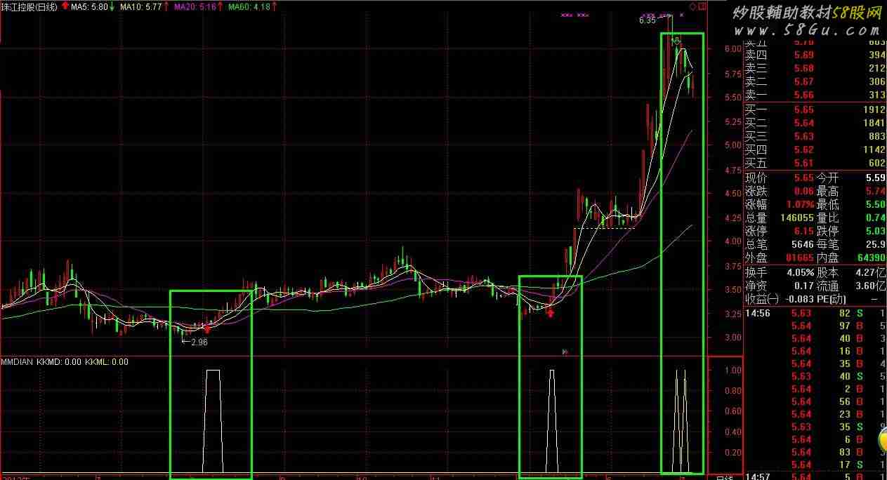 A001:=CLOSE-REF(CLOSE,6); A002:=MA(A001,6); A003:=((CLOSE-LLV(LOW,9))/(HHV(HIGH,9)-LLV(LOW,9)))*100; A004:=SMA(A003,3,1); A005:=SMA(A004,3,1); A006:=EMA((3*A004-2*A005),2); A007:=(HIGH+LOW+CLOSE)/3; A008:=((A007-MA(A007,14))/(0.015*AVEDEV(A007,14)))/2; A009:=(A008+(EMA(((0-(100*(HHV(HIGH,14)-CLOSE)/(HHV(HIGH,14)-LLV(LOW,14))))+100)/100,3)*200-100))/2; A010:=A009-REF(A009,14); A011:=A009-REF(A009,26); A012:=(A009+A010+A011)/3; KKM:=EMA(A012,4); A013:=HHV(HIGH,34); A014:=(2*CLOSE+HIGH+LOW)/4; A015:=LLV(LOW,34); A016:=EMA(((A014-A015)/(A013-A015))*100,13); A017:=EMA(0.667*REF(A016,1)+0.333*A016,2); KKMD:A016-A017>1 AND A016<30 AND A017<30; KKML:A016-A017<0 AND A016>80 AND A017>80 AND REF(A016-A017,1)>0;