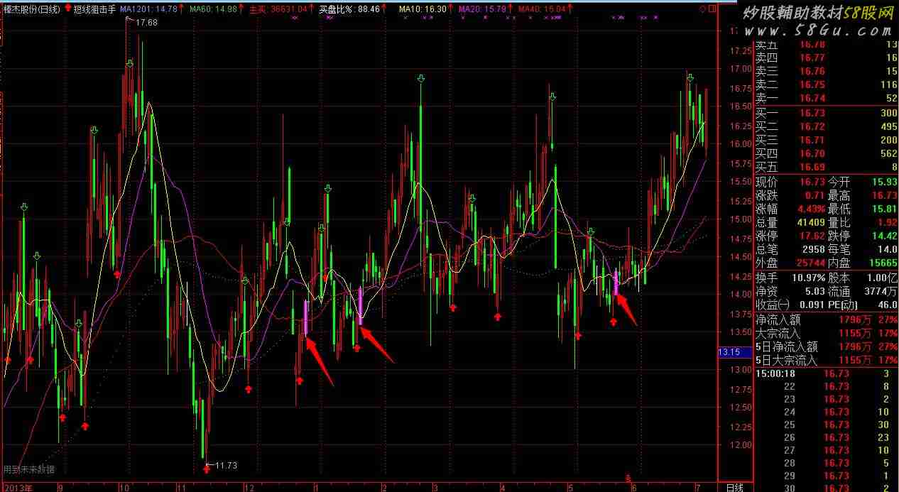 非本人原创,改写而已,但是效果很好,手动筛选去除下降趋势没有出现转点的个股。 {狙击点} A:=(3*C+H+L+O)/6; XJ:=(A+0.618*REF(A,1)+0.382*REF(A,2)+0.236*REF(A,3)+0.146*REF(A,4))/2.382;
