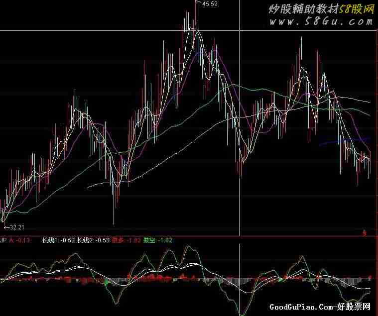 A:EMA((CLOSE-REF(C,1))/REF(C,1)*10-(INDEXC-REF(INDEXC,1))/REF(INDEXC,1)*10,5),LINETHICK1,COLORRED;STICKLINE(A>0,0,A,1,2),COLORRED;STICKLINE(A<0,0,A,1,2),COLORGREEN;HSNP1:=CLOSE-REF(CLOSE,1);HSNP2:=IF(CLOSE-REF(CLOSE,1)>=0,HSNP1,0);HSNP3:=REF(CLOSE,1)-CLOSE;HSNP4:=IF(CLOSE-REF(CLOSE,1)<=0,HSNP3,0);HSNP5:=SUM(HSNP2,90)/SUM(HSNP4,90);HSNP6:=100-100/(1+HSNP5);HSNP7:=EMA(HSNP6,21);HSNP8:=EMA(HSNP7,5);HSNP:=EMA(HSNP7,3);NP:=(HSNP7-HSNP);NL:=(HSNP-HSNP7);STICKLINE(NL<0,0,NL,1,2),COLOR0B0B77;STICKLINE(NP<0,0,NP,1,2),COLOR666666;JJ :=(C*2+H+L)/4;SK := EMA(JJ,13) - EMA(JJ,21);SD := EMA(SK,3);SP := EMA(SK,10);长线1:IF(SD>=SP,SD,SP),LINETHICK1,COLORFFFFAA;长线2:IF(SP-SD,SP,SD),LINETHICK1,COLORWHITE;A1:=EMA(CLOSE,7)-EMA(CLOSE,21);B1:=EMA((0.668*REF(A1,1)+0.333*A1),1);做多:IF(A1>=B1,A1,B1),LINETHICK1,COLORRED;做空:IF(B1-A1,B1,A1),LINETHICK1,COLORGREEN;