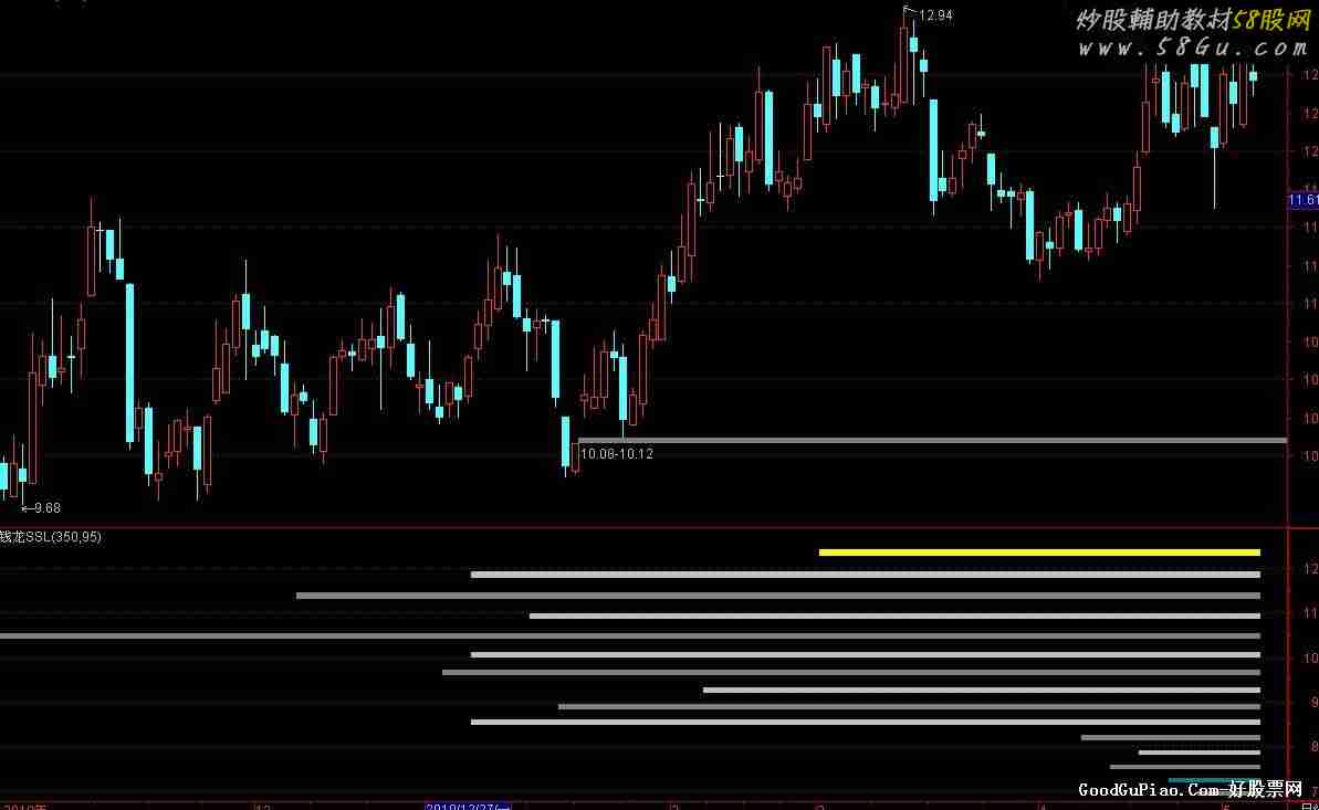 DA1:=IF(TS>TOTALBARSCOUNT,TOTALBARSCOUNT,TS); DA:=IF(CURRBARSCOUNT>DA1,0,DA1); HI:=REFDATE(HHV(H,DA),DATE);{最高价} LO:=REFDATE(LLV(L,DA),DATE); C1:=IF(CURRBARSCOUNT<=DA,C,DRAWNULL); GZ:=EXP(LN(HI/LO)/15); {对数格值} LH1:=SUM(IF(C1>=(HI/GZ),V,0),DA); LH2:=SUM(IF(C1>=(HI/POW(GZ,2)) AND C1<(HI/GZ),V,0),DA); LH3:=SUM(IF(C1>=(HI/POW(GZ,3)) AND C1<(HI/POW(GZ,2)),V,0),DA); LH4:=SUM(IF(C1>=(HI/POW(GZ,4)) AND C1<(HI/POW(GZ,3)),V,0),DA); LH5:=SUM(IF(C1>=(HI/POW(GZ,5)) AND C1<(HI/POW(GZ,4)),V,0),DA); LH6:=SUM(IF(C1>=(HI/POW(GZ,6)) AND C1<(HI/POW(GZ,5)),V,0),DA); LH7:=SUM(IF(C1>=(HI/POW(GZ,7)) AND C1<(HI/POW(GZ,6)),V,0),DA); LH8:=SUM(IF(C1>=(HI/POW(GZ,8)) AND C1<(HI/POW(GZ,7)),V,0),DA); LH9:=SUM(IF(C1>=(HI/POW(GZ,9)) AND C1<LO*POW(GZ,7),V,0),DA); LH10:=SUM(IF(C1>=(LO*POW(GZ,5)) AND C1<LO*POW(GZ,6),V,0),DA); LH11:=SUM(IF(C1>=(LO*POW(GZ,4)) AND C1<LO*POW(GZ,5),V,0),DA); LH12:=SUM(IF(C1>=(LO*POW(GZ,3)) AND C1<LO*POW(GZ,4),V,0),DA); LH13:=SUM(IF(C1>=(LO*POW(GZ,2)) AND C1<LO*POW(GZ,3),V,0),DA); LH14:=SUM(IF(C1>=(LO*GZ) AND C1<LO*POW(GZ,2),V,0),DA); LH15:=SUM(IF(C1>=LO AND C1<LO*GZ,V,0),DA); L1:=REFDATE(HHV(LH1,DA),DATE); L2:=REFDATE(HHV(LH2,DA),DATE); L3:=REFDATE(HHV(LH3,DA),DATE); L4:=REFDATE(HHV(LH4,DA),DATE); L5:=REFDATE(HHV(LH5,DA),DATE); L6:=REFDATE(HHV(LH6,DA),DATE); L7:=REFDATE(HHV(LH7,DA),DATE); L8:=REFDATE(HHV(LH8,DA),DATE); L9:=REFDATE(HHV(LH9,DA),DATE); L10:=REFDATE(HHV(LH10,DA),DATE); L11:=REFDATE(HHV(LH11,DA),DATE); L12:=REFDATE(HHV(LH12,DA),DATE); L13:=REFDATE(HHV(LH13,DA),DATE); L14:=REFDATE(HHV(LH14,DA),DATE); L15:=REFDATE(HHV(LH15,DA),DATE); SS:=(L1+L2+L3+L4+L5+L6+L7+L8+L9+L10+L11+L12+L13+L14+L15); STICKLINE(CEILING(DA*L1/SS)*3>=CURRBARSCOUNT ,HI*N/100,HI/GZ,5,0)COLORYELLOW; STICKLINE(CEILING(DA*L2/SS)*3>=CURRBARSCOUNT ,HI/POW(GZ,1)*N/100,HI/POW(GZ,2),5,0)COLORLIGRAY; STICKLINE(CEILING(DA*L3/SS)*3>=CURRBARSCOUNT ,HI/POW(GZ,2)*N/100,HI/POW(GZ,3),5,0)COLORGRAY; STICKLINE(CEILING(DA*L4/SS)*3>=CURRBARSCOUNT,HI/POW(GZ,3)*N/100,HI/POW(GZ,4),5,0)COLORLIGRAY; STICKLINE(CEILING(DA*L5/SS)*3>=CURRBARSCOUNT ,HI/POW(GZ,4)*N/100,HI/POW(GZ,5),5,0)COLORGRAY; STICKLINE(CEILING(DA*L6/SS)*3>=CURRBARSCOUNT ,HI/POW(GZ,5)*N/100,HI/POW(GZ,6),5,0)COLORLIGRAY; STICKLINE(CEILING(DA*L7/SS)*3>=CURRBARSCOUNT,HI/POW(GZ,6)*N/100,HI/POW(GZ,7),5,0)COLORGRAY; STICKLINE(CEILING(DA*L8/SS)*3>=CURRBARSCOUNT ,LO*POW(GZ,7),LO*POW(GZ,8)*N/100,5,0)COLORLIGRAY; STICKLINE(CEILING(DA*L9/SS)*3>=CURRBARSCOUNT ,LO*POW(GZ,6),LO*POW(GZ,7)*N/100,5,0)COLORGRAY; STICKLINE(CEILING(DA*L10/SS)*3>=CURRBARSCOUNT ,LO*POW(GZ,5),LO*POW(GZ,6)*N/100,5,0)COLORLIGRAY; STICKLINE(CEILING(DA*L11/SS)*3>=CURRBARSCOUNT ,LO*POW(GZ,4),LO*POW(GZ,5)*N/100,5,0)COLORGRAY; STICKLINE(CEILING(DA*L12/SS)*3>=CURRBARSCOUNT ,LO*POW(GZ,3),LO*POW(GZ,4)*N/100,5,0)COLORLIGRAY; STICKLINE(CEILING(DA*L13/SS)*3>=CURRBARSCOUNT ,LO*POW(GZ,2),LO*POW(GZ,3)*N/100,5,0)COLORGRAY; STICKLINE(CEILING(DA*L14/SS)*3>=CURRBARSCOUNT ,LO*POW(GZ,1),LO*POW(GZ,2)*N/100,5,0)COLORLICYAN; STICKLINE(CEILING(DA*L15/SS)*3>=CURRBARSCOUNT ,LO,LO*POW(GZ,1)*N/100,5,0)COLORGRAY; |