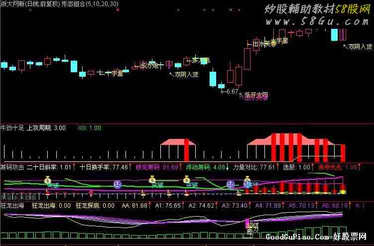VAR1:=VOL/((HIGH-LOW)*2-ABS(CLOSE-OPEN)); ZM:=IF(CLOSE>OPEN,VAR1*(HIGH-LOW),IF(CLOSE<OPEN,VAR1*((HIGH-OPEN)+(CLOSE-LOW)),VOL/2)),COLORRED,POINTDOT; ZM1:=IF(CLOSE>OPEN,0-VAR1*((HIGH-CLOSE)+(OPEN-LOW)),IF(CLOSE<OPEN,0-VAR1*(HIGH-LOW),0-VOL/2)),COLOR00FF00,POINTDOT; MMB:=(SUM(ZM,30)+SUM(ZM1,30))/10,COLORYELLOW; SG:=MMB>0 AND REF(MMB,1)<MMB; 上攻周期:COUNT(SG,5),LINESTICK,COLORWHITE; JSC:=上攻周期<1; DBQD:=FILTER(COUNT(JSC,5)>3 AND NOT(JSC),10); DRAWICON(DBQD,2,1); DRAWBAND(上攻周期,RGB(255,120,120),3,RGB(0,0,0)); DRAWBAND(JSC,RGB(0,0,255),0.5,RGB(0,0,0));STICKLINE(COUNT(上攻周期>3,5)>=3 AND SG,0,上攻周期,1.5,0),COLORRED; XG: COUNT(COUNT(上攻周期>3,5)>=3 AND SG,20)>4;用法:周线图上,连续出现红柱而股价未曾大涨的,极易成为黑马,如持续上攻的,则往往是大牛。日线上红柱后一般都会经历回调,回调见底之际是入场佳期。 选股公式源码: VAR1:=VOL/((HIGH-LOW)*2-ABS(CLOSE-OPEN)); ZM:=IF(CLOSE>OPEN,VAR1*(HIGH-LOW),IF(CLOSE<OPEN,VAR1*((HIGH-OPEN)+(CLOSE-LOW)),VOL/2)); ZM1:=IF(CLOSE>OPEN,0-VAR1*((HIGH-CLOSE)+(OPEN-LOW)),IF(CLOSE<OPEN,0-VAR1*(HIGH-LOW),0-VOL/2)); MMB:=(SUM(ZM,30)+SUM(ZM1,30))/10; SG:=MMB>0 AND REF(MMB,1)<MMB; 上攻周期:=COUNT(SG,5); JSC:=上攻周期<1; 选股:COUNT(COUNT(上攻周期>3,5)>=3 AND sg,20)>m; |
